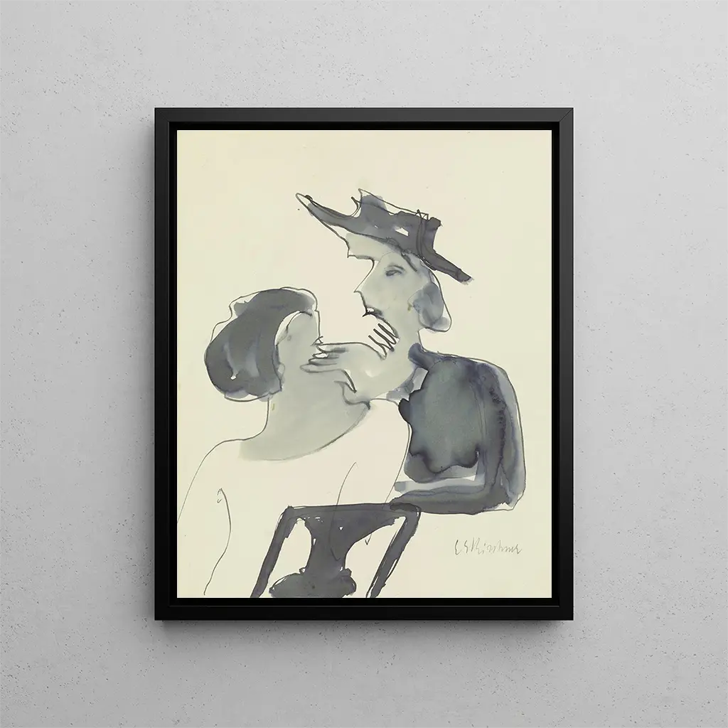 Lo stile di Kirchner si caratterizza per una palette audace e tratti di pennello espressivi, che infondono una dinamica particolare alle sue composizioni. In "Due donne che parlano", i colori vivaci e contrastanti, così come le forme stilizzate, creano un’atmosfera al tempo stesso intima e inquietante. Le figure, sebbene semplificate, possiedono una presenza palpabile, come se stessero per uscire dalla tela per rivolgersi direttamente allo spettatore. Kirchner utilizza linee angolari e forme deformate per esprimere le emozioni complesse dei personaggi, rivelando così le tensioni sottese alla loro interazione. Quest’opera è una vera esplorazione della psicologia umana, dove ogni dettaglio conta e ogni colore evoca una sensazione distinta.
