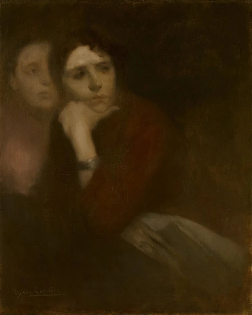 Nella affascinante universe dell'arte, alcune opere trascendono il semplice quadro per diventare testimoni di un'epoca, riflessi di emozioni e portatori di significato. "Due donne" di Eugène Carrière è una di queste creazioni che, per profondità e intimità, invita a una contemplazione meditativa. Quest'opera, intrisa di dolcezza e mistero, evoca la complicità tra due figure femminili, entrambe vicine e enigmatiche. La luce che inonda la tela e le sfumature delicate dei volti dei protagonisti creano un'atmosfera quasi palpabile, dove lo spettatore è invitato a immergersi nel loro universo. Questo quadro non è solo una rappresentazione visiva, è un invito a esplorare i legami umani e le emozioni che ci uniscono.
