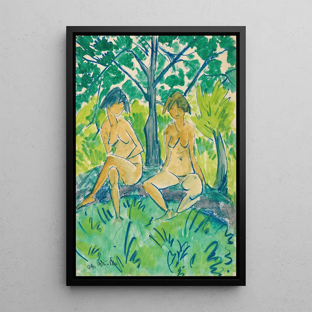 In l'opera "Deux nus de jeunes filles", Otto Mueller ci immerge in un'atmosfera intima e sensuale. I corpi dei modelli, delicatamente rappresentati, sono immersi in una luce soffusa, mettendo in risalto le curve e le forme femminili. I colori pastello dominano la tela, creando un'armonia visiva che evoca la serenità. La tecnica di Mueller, mescolando impressionismo ed espressionismo, conferisce a questa stampa d'arte una profondità emotiva, invitando lo spettatore a contemplare la bellezza effimera della giovinezza. Ogni dettaglio, dalle pose alle espressioni, racconta una storia silenziosa, catturando un momento di grazia.