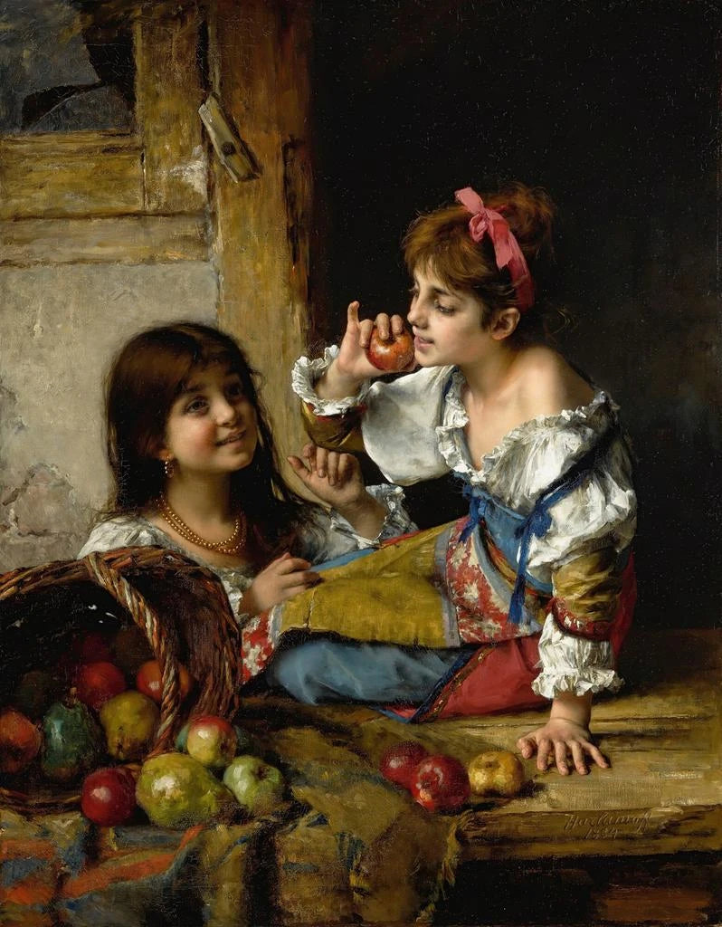 Stampa d'arte | Due ragazze con mele e pere - Alexei Harlamoff