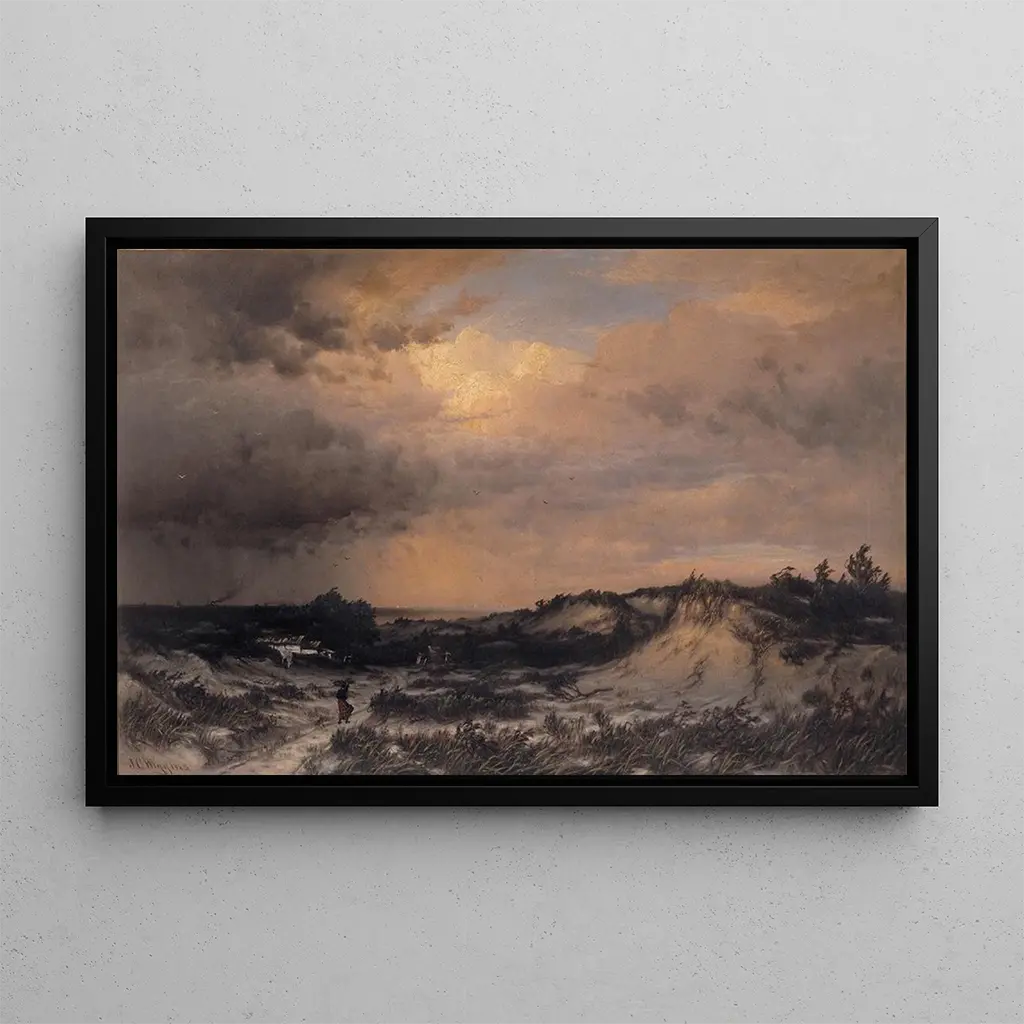Dunes di sabbia Coney Island: un'evasione verso paesaggi soleggiati La stampa d'arte "Dunes di sabbia Coney Island" di Carleton Wiggins evoca una scena estiva in cui le dune dorate si mescolano con l'azzurro del cielo. I colori vivaci e luminosi, tipici dell'opera di Wiggins, creano un'atmosfera gioiosa e rilassante, invitando all'evasione. La tecnica impressionista, con i suoi tocchi di pennello fluidi ed espressivi, permette di percepire il calore del sole e il leggero movimento delle dune. Ogni dettaglio, dalle ombre portate ai riflessi della luce, contribuisce a una composizione armoniosa che trasporta lo spettatore verso le spiagge animate di Coney Island, simbolo di svago e relax. Carleton Wiggins: un maestro di luce e colore Carleton Wiggins, attivo alla fine del XIX secolo, è riconosciuto per la sua capacità di catturare la luce e l'atmosfera dei paesaggi americani. Influenzato dall'impressionismo, ha saputo sviluppare uno stile unico che valorizza la bellezza delle scene naturali. Le sue opere, spesso ispirate da luoghi emblematici come Coney Island, testimoniano il suo amore per la natura e i piaceri semplici della vita. Come artista, ha svolto un ruolo importante nella rappresentazione dei paesaggi americani, e le sue stampe d'arte continuano a ispirare gli appassionati d'arte in tutto il mondo. Una proposta decorativa con molteplici vantaggi Scegliere una stampa d'arte del quadro "Dunes di sabbia Coney Island" è un modo ideale per aggiungere un tocco di freschezza e vitalità al vostro spazio. Che sia in un soggiorno, un ufficio o una camera da letto, questa tela evoca ricordi di vacanze e momenti di relax. La qualità della stampa d'arte garantisce fedeltà ai colori e ai dettagli dell'opera originale, offrendo allo stesso tempo un forte impatto visivo. Integrando questa opera nella vostra decorazione, create un ambiente accogliente e ispirante, perfetto per ricaricarsi e sognare orizzonti lontani.