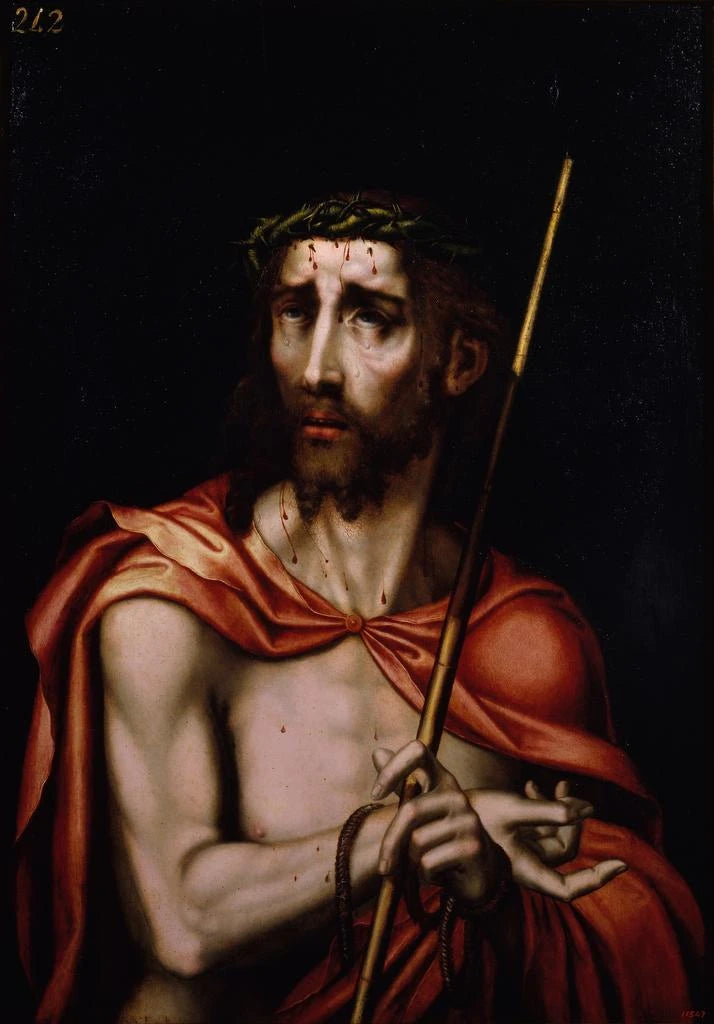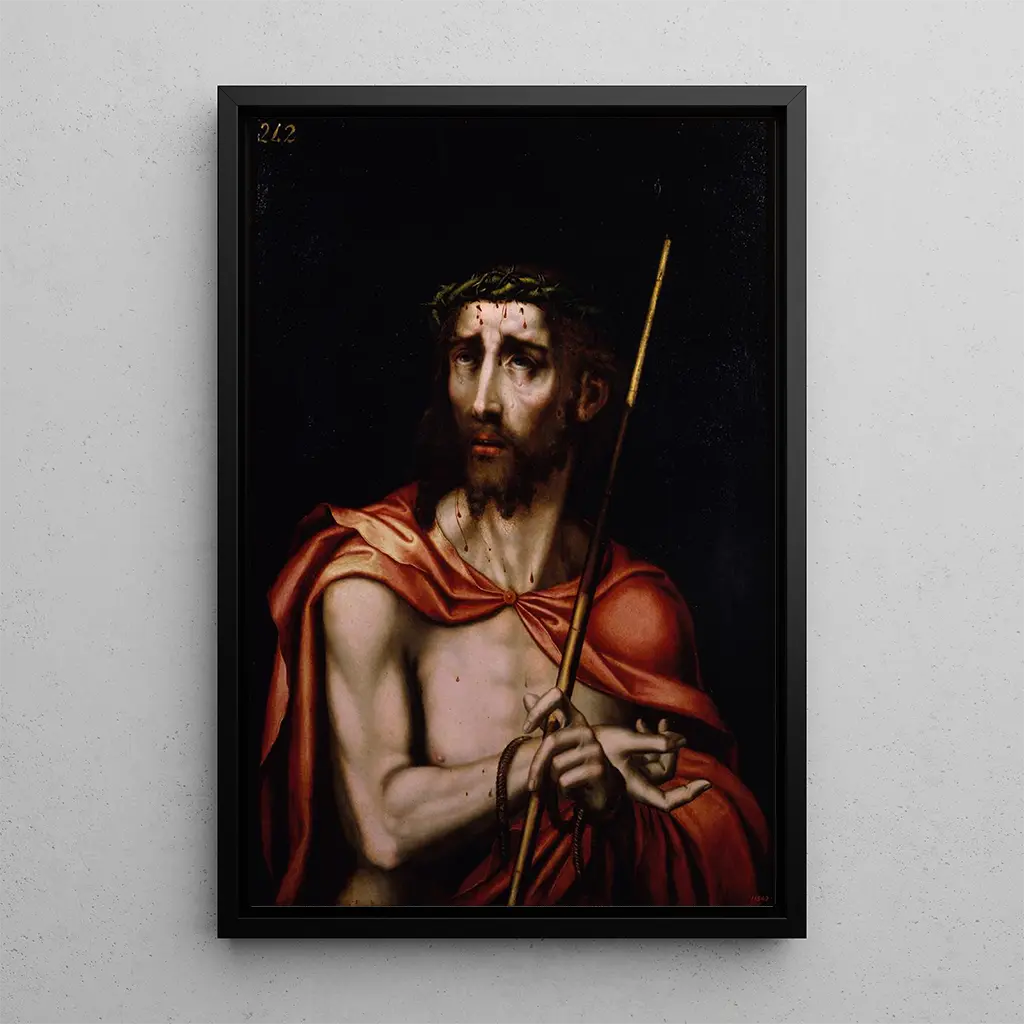 Luis de Morales, attivo nel XVI secolo, è spesso considerato uno dei più grandi pittori della Rinascita spagnola. Influenzato dalle tradizioni fiamminghe e italiane, ha saputo sviluppare uno stile unico, combinando realismo e spiritualità. Morales ha dedicato una grande parte della sua carriera alla creazione di opere religiose, e "Ecce Homo" ne è un esempio emblematico. Il suo approccio introspettivo e la capacità di catturare l'essenza della sofferenza umana gli hanno valso un ruolo importante nella storia dell'arte. Il suo contributo alla stampa d'arte religiosa continua a ispirare artisti contemporanei.