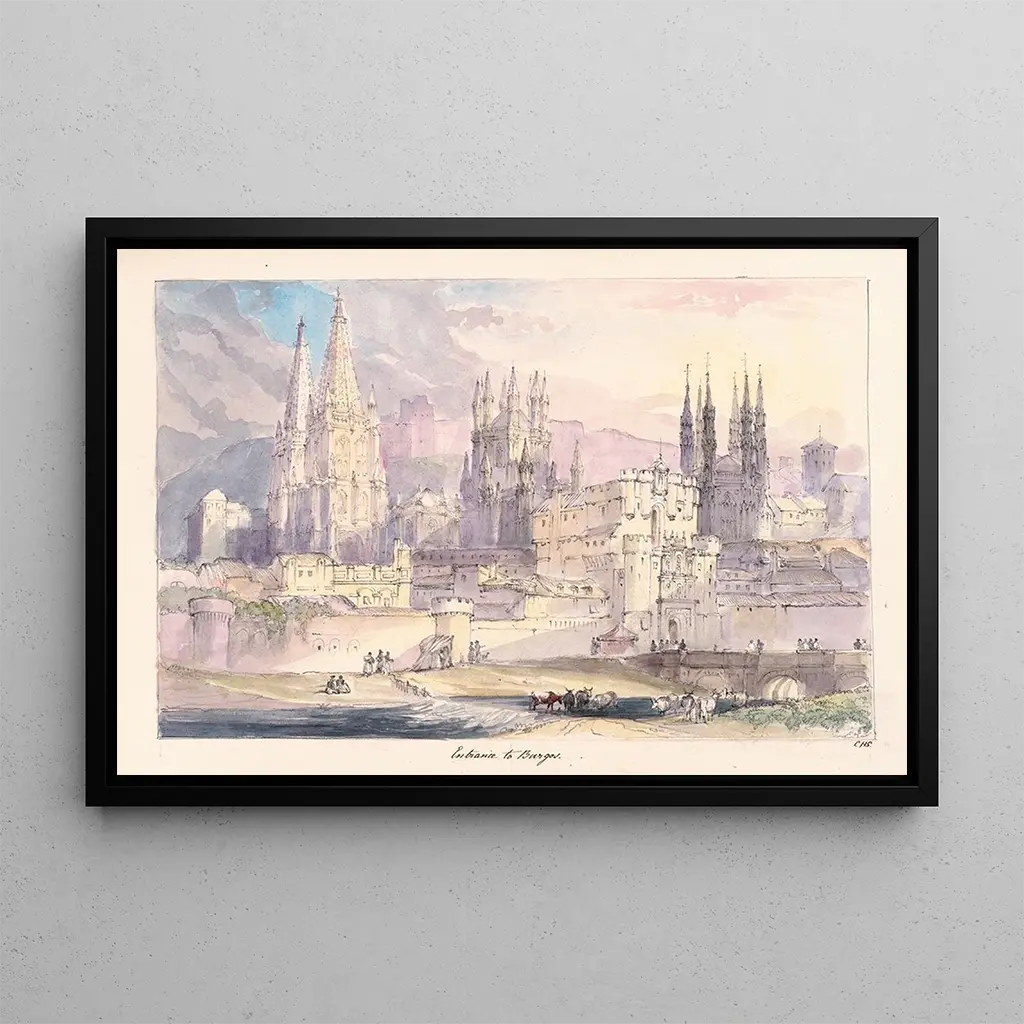 Entrata di Burgos: una scena storica intrisa di serenità L'opera "Entrata di Burgos" di Charles Hamilton Smith rappresenta una scena affascinante in cui storia e natura si incontrano. I colori delicati e i dettagli minuziosi evocano un'atmosfera pacifica, quasi contemplativa. La composizione mette in evidenza un ingresso maestoso, circondato da paesaggi verdi e cieli nuvolosi, creando un equilibrio armonioso tra architettura e il mondo naturale. La tecnica di Smith, che combina acquerello e disegno, permette di catturare la luce in modo da dare vita a ogni elemento della tela. Questo quadro invita lo spettatore a immergersi in un momento di tranquillità, evocando al contempo la grandezza di un passato ormai passato. Charles Hamilton Smith: un testimone del suo tempo Charles Hamilton Smith, attivo all'inizio del XIX secolo, è riconosciuto per le sue opere che mescolano arte e documentazione storica. Influenzato dal movimento romantico, ha saputo catturare scene di vita quotidiana e paesaggi con una precisione notevole. La sua carriera lo ha portato a esplorare vari soggetti, dai paesaggi ai ritratti, con particolare interesse per l'architettura. Smith è stato anche un illustratore prolifico, contribuendo a opere sulla storia naturale e l'archeologia. Il suo approccio artistico, che unisce realismo e sensibilità, lo rende una figura importante della sua epoca, portando una visione unica all'arte britannica. Una riproduzione decorativa con molteplici vantaggi La riproduzione di "Entrata di Burgos" è un pezzo decorativo che si integra perfettamente in diversi spazi, che si tratti di un soggiorno, di un ufficio o di una camera da letto. La qualità di stampa garantisce fedeltà ai dettagli originali, permettendo di apprezzare l'opera nella sua piena magnificenza. Con le sue tonalità rilassanti e la sua atmosfera serena, questa stampa d'arte aggiunge un tocco di eleganza e cultura al vostro interno. L'attrattiva estetica di questa tela la rende una scelta ideale per chi desidera arricchire la propria decorazione celebrando allo stesso tempo l'eredità artistica di Charles Hamilton Smith.