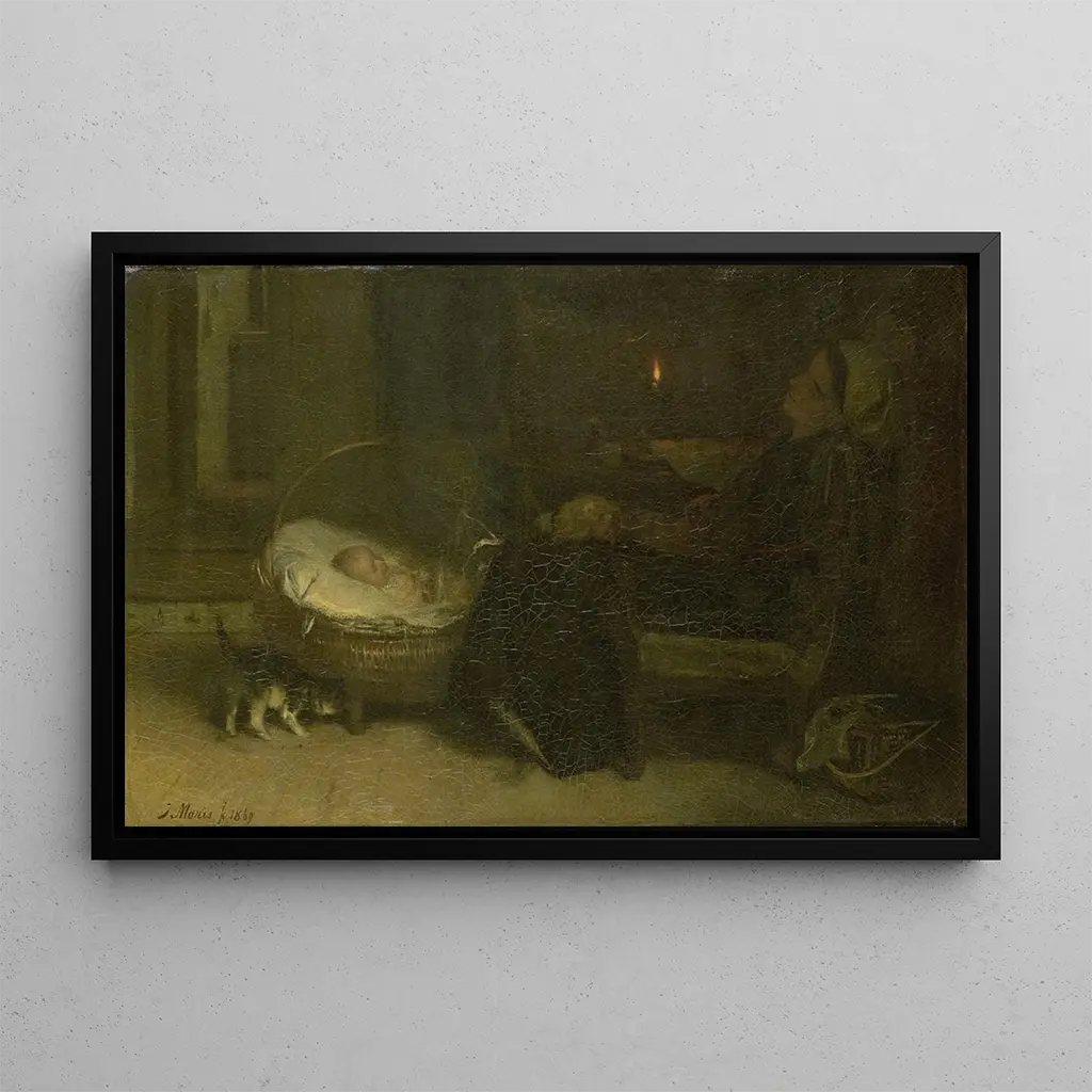 Épuisée Mère Surveillée : una tenerezza catturata La stampa d'arte di Épuisée Mère Surveillée, opera di Jacob Maris, evoca una scena intima ed emotiva in cui la stanchezza di una madre si mescola all'amore incondizionato che le dedica al suo bambino. I colori delicati e le sfumature pastello creano un'atmosfera calda, mentre la luce delicata mette in risalto i tratti rasserenanti della madre. La tecnica di Maris, caratterizzata da pennellate fluide, dà vita a questa scena toccante, invitando lo spettatore a percepire la profondità di questo momento di tenerezza. Jacob Maris: un maestro delle scene di genere Jacob Maris, pittore olandese del XIX secolo, è famoso per le sue rappresentazioni della vita quotidiana e dei paesaggi. Evolvendosi nel movimento impressionista, ha saputo catturare momenti di vita con una sensibilità unica. Influenzato da artisti come Vincent van Gogh, Maris ha sviluppato uno stile che unisce realismo e impressionismo, mettendo in evidenza le emozioni umane. La sua opera, ricca di dettagli e colori, testimonia l'importanza delle relazioni familiari e dei momenti semplici della vita, rendendolo un artista imprescindibile della sua epoca. Una scelta decorativa con molteplici vantaggi La stampa d'arte di Épuisée Mère Surveillée è una scelta decorativa che porta un tocco di dolcezza e calore nel vostro ambiente. Che sia in una camera dei bambini, un soggiorno o uno studio, questa tela saprà creare un'atmosfera rasserenante e confortante. La qualità di stampa garantisce fedeltà all'opera originale, offrendo allo stesso tempo un indiscusso valore estetico. Integrando questa opera nella vostra decorazione, aggiungete una dimensione emotiva al vostro spazio, celebrando la bellezza delle relazioni umane attraverso l'arte.