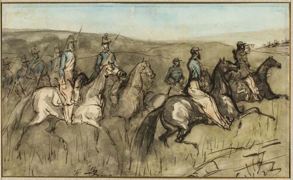 Esercizio di cavalleria in un prato - Constantin Guys