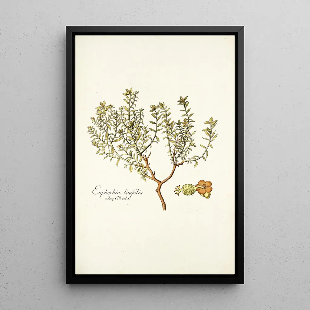 L'œuvre "Euphorbia linifolia" di Nikolaus Joseph Freiherr von Jacquin si presenta come un vero omaggio alla bellezza delle piante. Questa stampa d'arte mette in evidenza la delicatezza delle forme e la ricchezza dei colori che caratterizzano questa specie di euforbia. La composizione è accuratamente elaborata, ogni dettaglio della pianta è rappresentato con precisione, creando un'atmosfera al tempo stesso rilassante e rivitalizzante. Le tonalità vibranti di verde, impreziosite da sfumature più morbide, evocano la luce naturale che avvolge queste piante, invitando lo spettatore a una contemplazione attenta e rispettosa della natura.