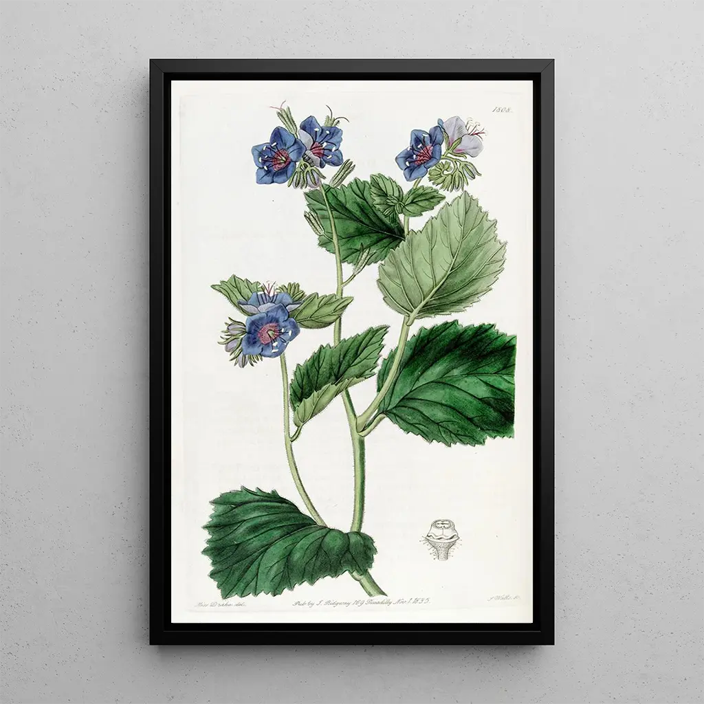 L'Eutoca visqueuse, rappresentata con una finezza notevole da Sydenham Edwards, è un'opera che celebra la bellezza delle piante. I dettagli minuziosi di questa illustrazione botanica rivelano la complessità della struttura floreale, mentre i colori morbidi e naturali evocano un senso di serenità. La tecnica di incisione permette di mettere in risalto le texture e le sfumature, creando un'atmosfera rilassante. Questa tela invita lo spettatore ad apprezzare la sottigliezza della natura, offrendo anche una visione artistica della botanica.