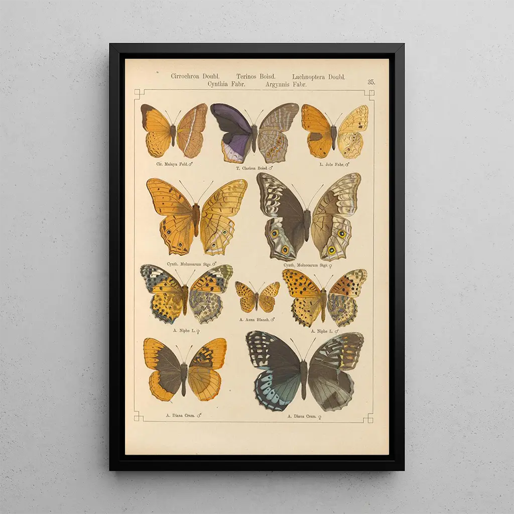 Le "Papillons exotiques Pl035" di Otto Staudinger sono un vero omaggio alla diversità e alla bellezza delle specie. Quest'opera, ricca di dettagli, presenta farfalle con motivi affascinanti, ognuna delle quali è un'opera d'arte a sé stante. I colori vivaci, che vanno dal rosso acceso al verde lussureggiante, creano un'armonia visiva coinvolgente. La tecnica dell'acquarello, con le sue sfumature delicate, conferisce all'insieme leggerezza e fluidità che richiamano il movimento aggraziato delle farfalle nella natura. Questa stampa d'arte invita all'evasione e all'ammirazione per la ricchezza del mondo vivente.
