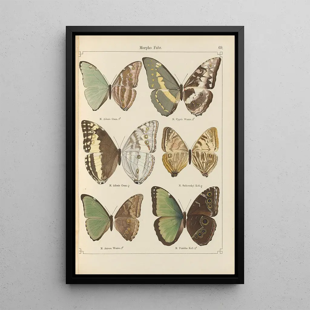 La riproduzione di "Papillons exotiques Pl069" di Otto Staudinger è una vera ode alla bellezza della natura. I colori vivaci delle ali delle farfalle, che vanno dai blu intensi ai gialli dorati, si mescolano armoniosamente per creare un'atmosfera allo stesso tempo gioiosa e rilassante. La tecnica dell'acquarello, utilizzata con finezza, dà vita a ogni dettaglio, dalle nervature delicate delle ali alle ombre sottili che le circondano. Questo quadro invita a una contemplazione attenta, dove ogni sguardo rivela una nuova sfumatura e una nuova emozione, come se le farfalle stessero per spiccare il volo fuori dalla tela.