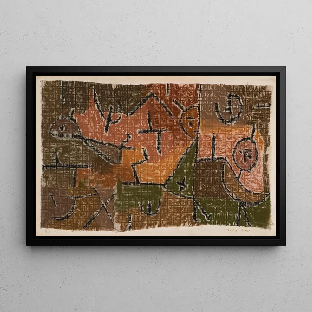 La riproduzione di "Messe noire" è un pezzo d'arte che arricchirà la vostra decorazione d'interni. Che sia in un soggiorno, in uno studio o in una camera da letto, questa tela aggiunge un tocco di originalità e mistero. La qualità della riproduzione garantisce fedeltà ai colori e ai dettagli dell'opera originale, permettendo di godere appieno dell'universo di Klee. L'attrattiva estetica di quest'opera risiede nella sua capacità di suscitare interesse e stimolare la conversazione. Scegliere questa riproduzione significa optare per una decorazione audace e ispirante che sicuramente impressionerà i tuoi ospiti.