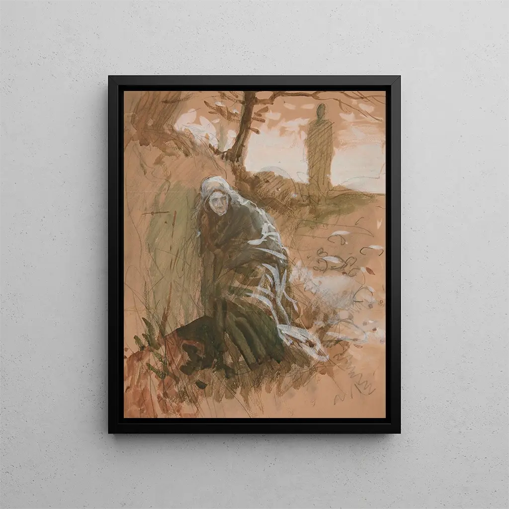 Figura nella foresta - Edwin Austin Abbey – Introduzione affascinante Nel affascinante universo dell'arte, alcune opere riescono a trascendere il tempo e lo spazio, catturando l'immaginario degli spettatori. "Figura nella foresta - Edwin Austin Abbey" ne è un esempio perfetto. Questa tela, intrisa di mistero ed emozione, ci trasporta nel cuore di una natura allo stesso tempo selvaggia e poetica. Attraverso lo sguardo dell'artista, scopriamo una scena in cui l'umano e la natura si incontrano, creando un dialogo silenzioso ma potente. L'atmosfera che emana da quest'opera invita alla contemplazione e alla riflessione, spingendoci a interrogarci sulla nostra relazione con il mondo naturale. Stile e unicità dell’opera Lo stile di Edwin Austin Abbey si distingue per un'eccezionale padronanza dei colori e delle luci. In "Figura nella foresta", le sfumature di verde, marrone e oro si mescolano armoniosamente, evocando le profondità di una foresta misteriosa. L'artista gioca abilmente con le ombre e le luci, creando un effetto di profondità che attira lo sguardo verso il personaggio centrale. Quest'ultimo, delicatamente posato nel suo ambiente, sembra essere in armonia con la natura e allo stesso tempo in disparte, come se fosse uno spettatore della propria esistenza. La composizione dell'opera, con le sue linee sinuose e le sue forme organiche, contribuisce a una sensazione di movimento, di vita, dove ogni elemento sembra respirare. Questa unicità stilistica fa di "Figura nella foresta" un'opera emblematica che continua a ispirare e meravigliare. L’artista e la sua influenza Edwin Austin Abbey, nato nel 1852, è un artista il cui percorso è segnato da una passione per i racconti visivi e da una profonda ammirazione per la letteratura. La sua opera è spesso impregnata di una sensibilità romantica, in cui riesce a catturare momenti fugaci di bellezza ed emozione. Abbey ha saputo imporsi nel mondo dell'arte grazie alla sua capacità di unire temi classici a un approccio moderno. La sua influenza si fa sentire non solo nella pittura, ma anche nell'illustrazione, dove ha saputo dare vita a personaggi letterari con un'intensità rara. "Figura nella foresta" testimonia questa ricerca di bellezza e verità, offrendo al contempo una riflessione su...
