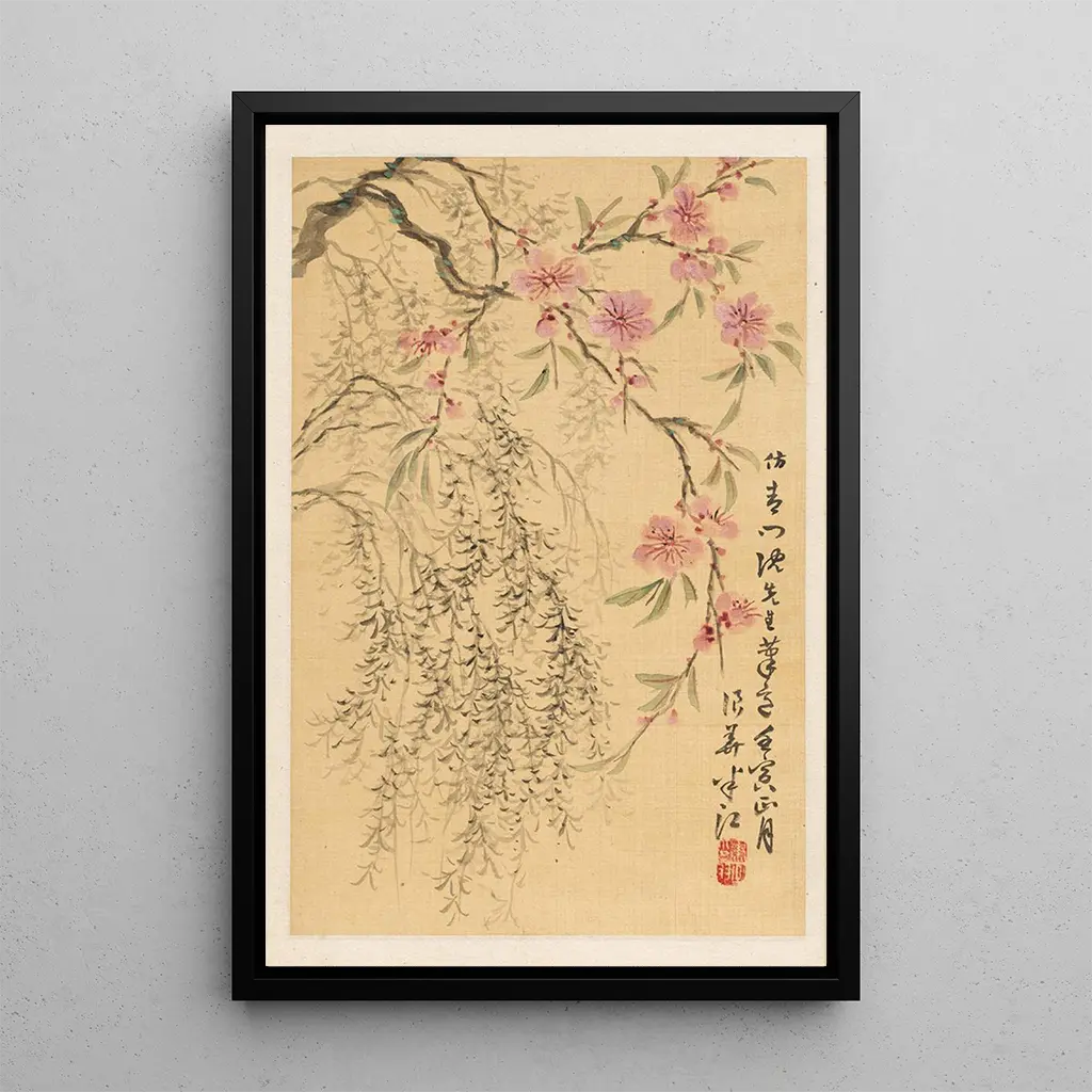 Quadro Fleurs de pêcher et saules - Okada Hankō | Stampa d'arte