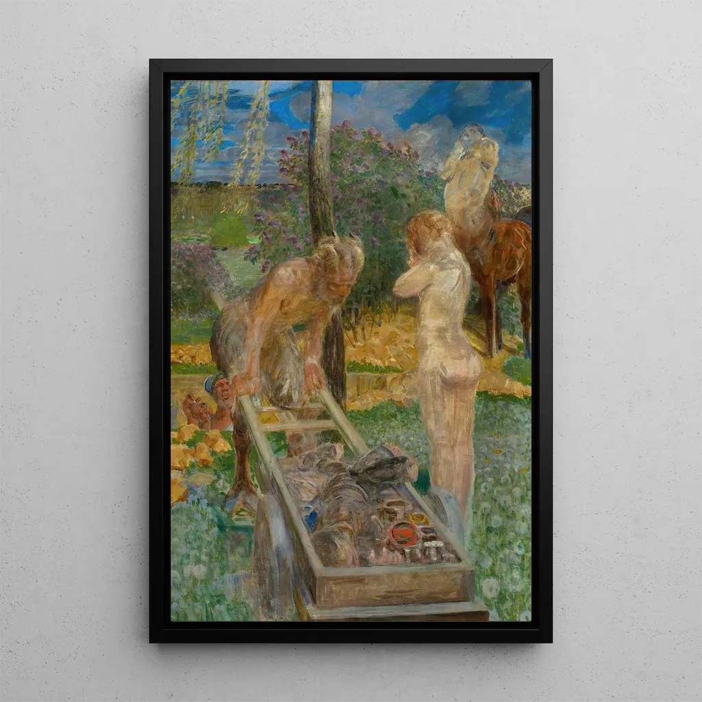 La riproduzione di "Funerali di un apprendista pittore" è una scelta ideale per arricchire il vostro interno, che sia in un salotto, uno studio o una camera da letto. La qualità di stampa e la fedeltà all'opera originale garantiscono un fascino estetico indiscutibile. Questo quadro, con i suoi temi profondi e la sua atmosfera evocativa, suscita curiosità e contemplazione, diventando così un punto focale in qualsiasi spazio. Integrando questa stampa d'arte nella vostra decorazione, portate un tocco di eleganza e riflessione, celebrando allo stesso tempo l'eredità artistica di un maestro del simbolismo.