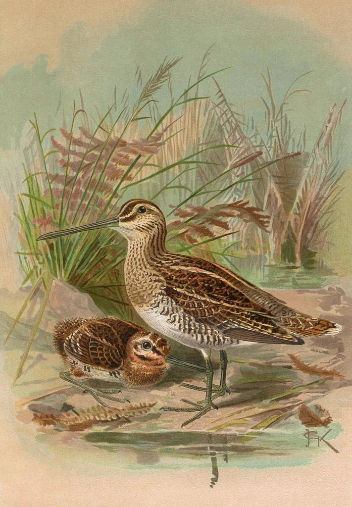 La stampa d'arte di Gallinago gallinago, conosciuta anche come beccaccia, ci immerge in un universo naturale intriso di poesia. Con le sue tonalità marroni e beige, questa opera evoca la dolcezza dei paesaggi umidi dove questo uccello si mimetizza con facilità. La tecnica dell'artista, Johann Friedrich Naumann, si distingue per un realismo sorprendente, catturando ogni dettaglio del piumaggio e la grazia dell'uccello in volo. L'atmosfera che si percepisce da questa opera è sia serena che vivace, invitando lo spettatore a meravigliarsi davanti alla bellezza della fauna selvatica.