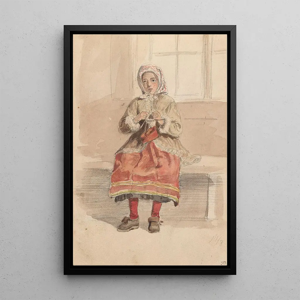 Stampa d'arte | Giovane donna che tricotta - Adolph Tidemand