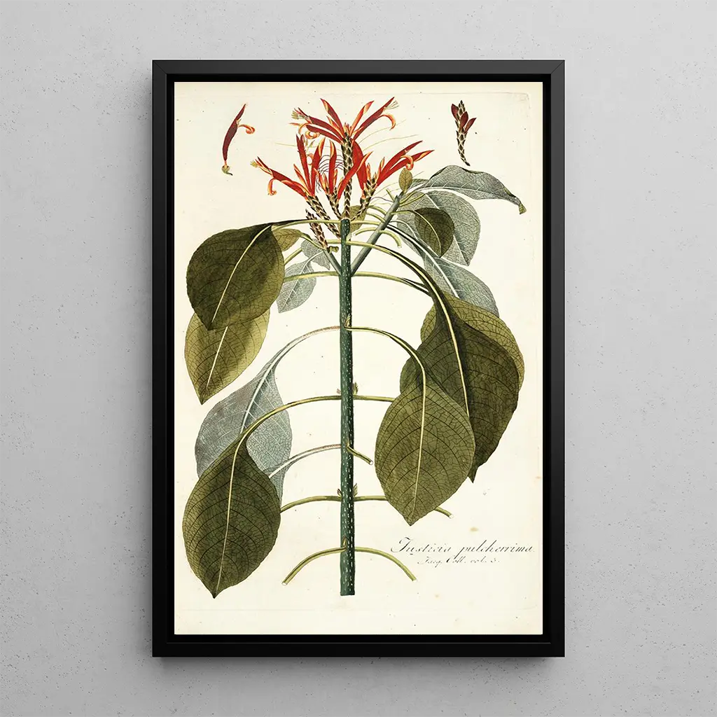 La stampa d'arte di Justicia pulcherrima rappresenta una scelta decorativa ideale per aggiungere un tocco di freschezza al vostro interno. Che sia in un soggiorno, un ufficio o una camera da letto, questa opera vibrante cattura lo sguardo e stimola i sensi. La qualità di stampa garantisce fedeltà ai colori originali, offrendo al contempo un forte impatto estetico. Integrando questa tela nella vostra decorazione, create uno spazio in cui la natura e l'arte si incontrano, portando un'atmosfera calda e accogliente.