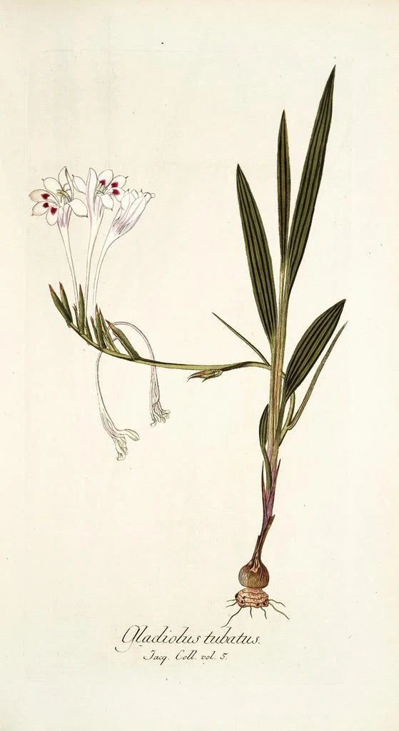 Nikolaus Joseph Freiherr von Jacquin, botanico e artista del XVIII secolo, ha saputo unire arte e scienza in modo inedito. Formato a Vienna, è stato influenzato dalle scoperte botaniche del suo tempo, cercando di immortalare la bellezza delle piante attraverso le sue opere. Gladiolus tubatus è un esempio perfetto del suo approccio, dove combina una rappresentazione fedele dei fiori con un'estetica raffinata. Il suo lavoro ha non solo arricchito il mondo dell'arte, ma ha anche contribuito all'avanzamento delle conoscenze botaniche, facendolo diventare un pioniere in questo campo.