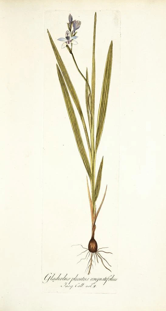 Nikolaus Joseph Freiherr von Jacquin, figura emblematica del XVIII secolo, ha saputo unire la sua passione per la botanica e il suo talento artistico. I suoi studi approfonditi e i suoi viaggi gli hanno permesso di scoprire specie vegetali rare, che ha poi immortalato nelle sue opere. Gladiolus plicatus angustifolius è un esempio perfetto del suo approccio meticoloso, dove ogni dettaglio è osservato con cura. In qualità di botanico, Jacquin ha anche contribuito all'avanzamento delle conoscenze sulle piante, facendone un precursore nel campo dell'illustrazione scientifica.
