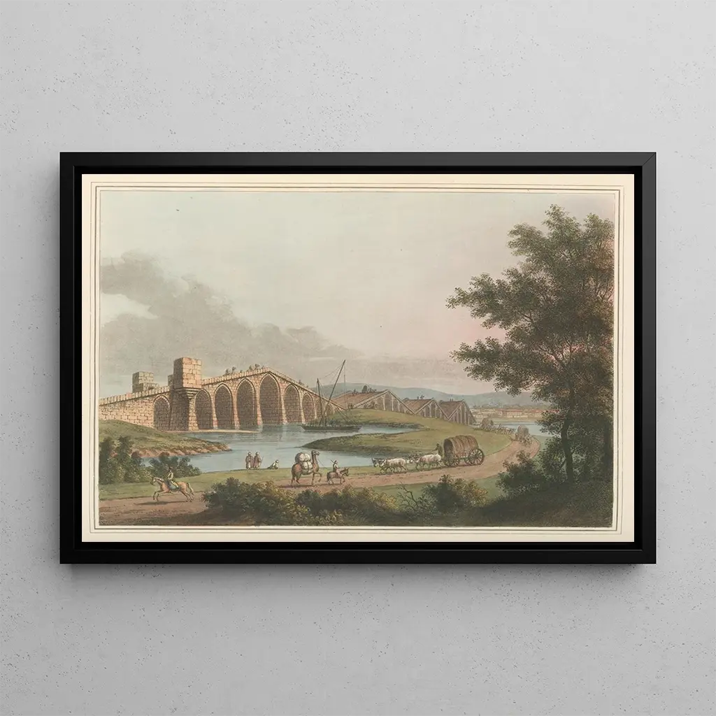 Grand pont : un'opera che celebra la maestà architettonica. La stampa d'arte del Grand pont di Luigi Mayer ci trasporta in un universo dove l’architettura si mescola con la natura. Le tonalità delicate di blu e verde, associate a tocchi di luce dorata, creano un’atmosfera al tempo stesso serena e grandiosa. La tecnica della pittura ad olio usata da Mayer permette di rendere con precisione i dettagli delle strutture, infondendo al contempo una certa poesia alla scena. Questo quadro invita alla contemplazione, dove ogni elemento sembra raccontare una storia, e dove il ponte diventa il simbolo di un passaggio tra due mondi. Luigi Mayer: un testimone della sua epoca. Luigi Mayer, attivo nel XVIII secolo, è un artista le cui opere testimoniano un interesse marcato per i paesaggi e l’architettura. Influenzato dal movimento romantico, ha saputo catturare l’essenza dei luoghi che ha dipinto, integrando elementi della cultura europea. Mayer ha viaggiato attraverso l’Europa, il che gli ha permesso di assorbirne stili diversi e di trascriverli con finezza su tela. Il suo lavoro è spesso considerato un ponte tra il classicismo e il romanticismo, e ha lasciato un’impronta duratura nella storia dell’arte. Un acquisto decorativo con molteplici vantaggi. La stampa d'arte del Grand pont è un pezzo decorativo che saprà abbellire qualsiasi spazio, che si tratti di un salotto, di un ufficio o di una camera da letto. La qualità di stampa garantisce una fedeltà notevole ai colori e ai dettagli dell’opera originale, aggiungendo un tocco di eleganza al vostro interno. Questo quadro, con il suo indiscusso fascino estetico, è ideale per chi desidera creare un’atmosfera rilassante e ispirante. Integrando questa tela nella vostra decorazione, offrite al vostro spazio una dimensione artistica e un dialogo visivo coinvolgente.