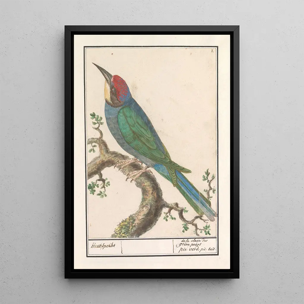 La stampa d'arte Guêpier di Anselmus Botius de Boodt presenta questo uccello colorato in un contesto naturale splendente. Le tonalità vivaci di blu, giallo e verde si mescolano armoniosamente, creando una scena dinamica che cattura immediatamente lo sguardo. La tecnica della pittura ad olio permette di rendere i dettagli delle piume con una precisione sorprendente, mentre lo sfondo sfocato evoca un ambiente rigoglioso. Quest'opera è una celebrazione della biodiversità, invitando lo spettatore ad apprezzare la bellezza delle specie aviarie e del loro habitat.