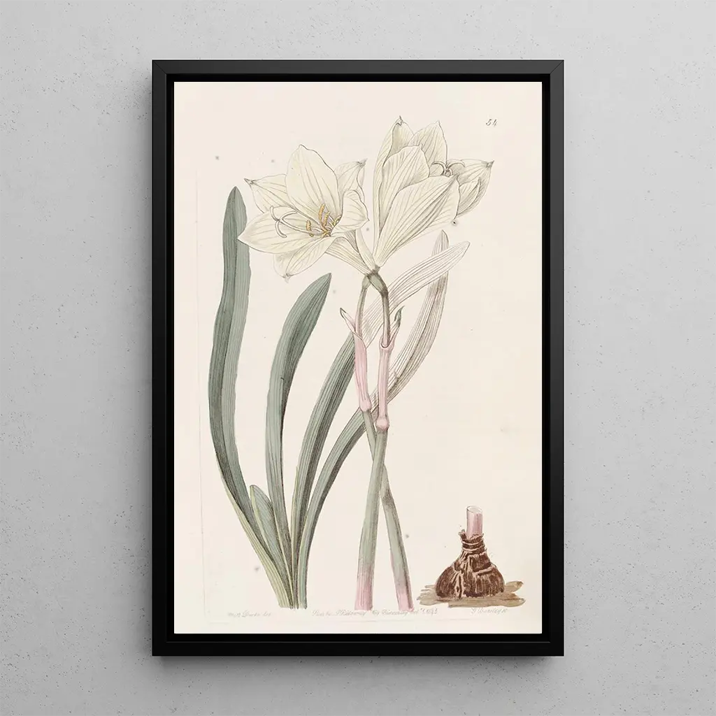 La stampa d'arte Habranth de couleur uniforme presenta un'eleganza minimalista che cattura immediatamente lo sguardo. Quest'opera, caratterizzata da tonalità monocromatiche, evoca una serenità e un'armonia visiva che placano la mente. La tecnica dell'acquerello, padroneggiata da Sydenham Edwards, permette di giocare subtilmente con la luce e le ombre, creando così una profondità affascinante. Ogni sfumatura di colore sembra vibrare, offrendo un'esperienza contemplativa unica, dove la bellezza risiede nella semplicità.