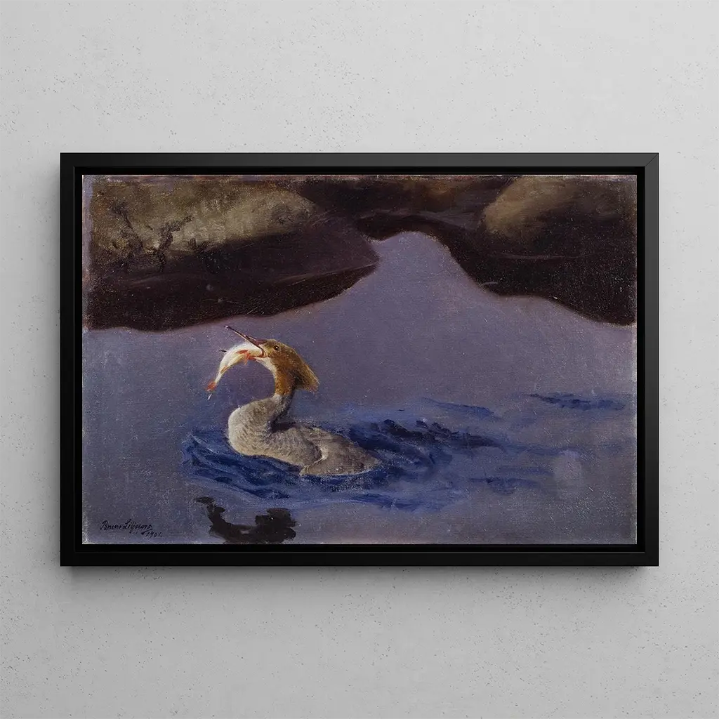 Harle Femelle : un'eleganza naturale sul bordo dell'acqua La stampa d'arte Harle Femelle di Bruno Liljefors cattura brillantemente la grazia e la bellezza di questo uccello acquatico. I colori vivaci e variopinti del suo piumaggio, che vanno dalle sfumature di marrone agli éclats di arancione e verde, si mescolano armoniosamente a uno sfondo di natura serena. La tecnica di pittura ad olio utilizzata dall'artista conferisce una texture ricca e vivace all'opera, creando un'atmosfera pacifica e contemplativa. Ogni dettaglio, dal riflesso del'anatra sull'acqua alla delicatezza delle erbe circostanti, invita lo spettatore a immergersi in un momento di tranquillità. Bruno Liljefors : un maestro della fauna selvatica Bruno Liljefors, pittore svedese dell'inizio del XX secolo, è riconosciuto per le sue opere che rappresentano la fauna e la flora nordiche. Influenzato dal movimento naturalista, è riuscito a catturare la bellezza cruda della natura con una precisione notevole. La sua carriera, segnata da una profonda passione per la vita selvatica, è stata costellata di successi, facendolo diventare uno degli artisti più rispettati del suo tempo. Liljefors è stato anche un precursore nell'uso della luce e dell'ombra, come si riflette nella stampa d'arte Harle Femelle, dove ogni sfumatura contribuisce all'armonia della composizione. Una acquisizione decorativa con molteplici vantaggi La stampa d'arte del quadro Harle Femelle è una scelta ideale per arricchire la vostra decorazione d'interni. Che si tratti di un soggiorno, di un ufficio o di una camera da letto, questa tela aggiunge un tocco di natura ed eleganza. La qualità della stampa garantisce fedeltà ai dettagli originali, permettendo di apprezzare appieno l'opera di Liljefors. Con il suo fascino estetico, questa opera saprà conquistare gli appassionati d'arte e di natura, creando un'atmosfera rilassante nel vostro spazio vitale.