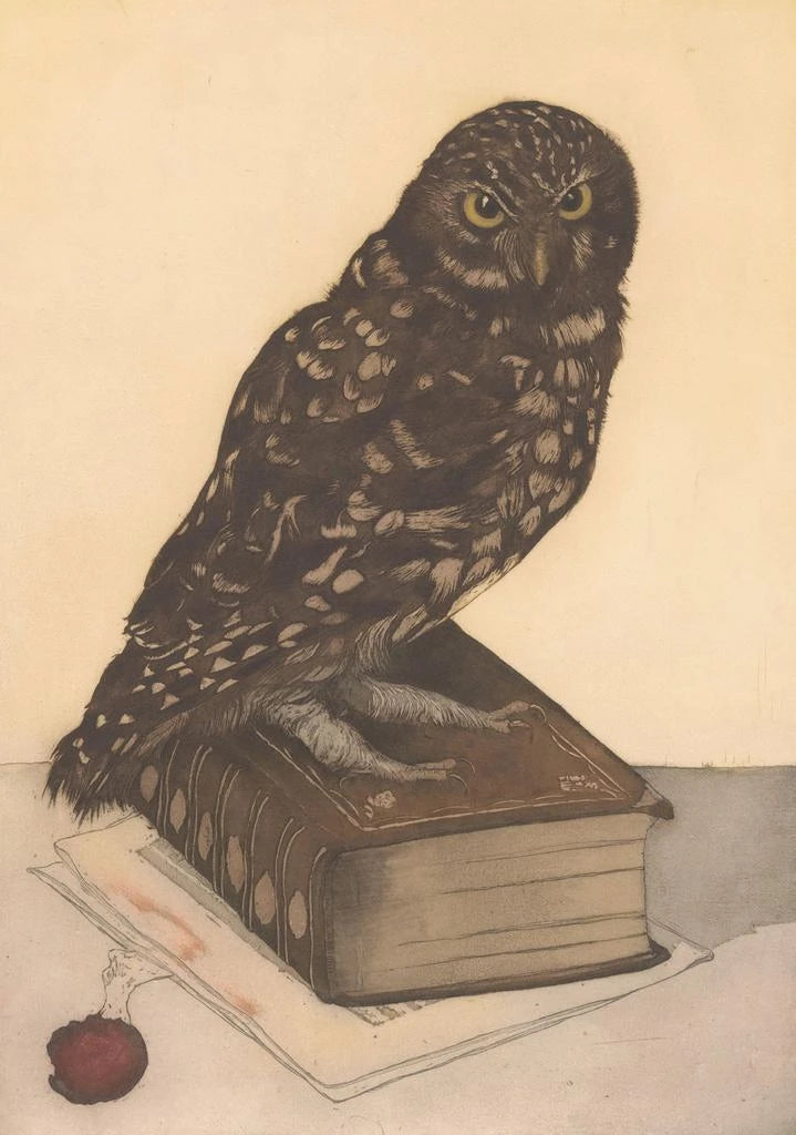 Quadro Hibou assis sur un livre - Frans Everbag | Stampa d'arte