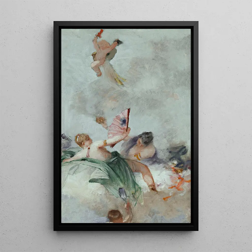Les Parfums, opera emblematica di Gabriel Ferrier, evoca un'atmosfera incantata in cui la bellezza dei fiori si mescola alla dolcezza dei colori pastello. La tela, ricca di dettagli, presenta donne delicate circondate da mazzi lussureggianti, creando un'armonia visiva affascinante. Le sfumature di rosa, di viola e di verde si fondono con grazia, mentre la luce sembra accarezzare i volti dei modelli, aggiungendo una dimensione quasi eterea alla scena. Questa composizione invita a una contemplazione serena, dove ogni sguardo rivela nuove sottigliezze e un profumo di evasione.