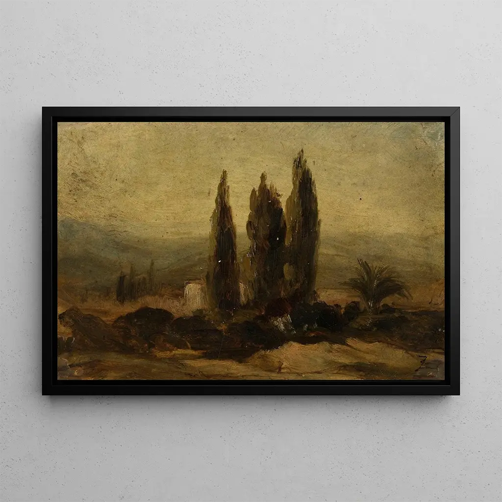 Félix Ziem, pittore francese del XIX secolo, è riconosciuto per i suoi paesaggi marini e le sue vedute di Venezia. Influenzato dal romanticismo, sviluppa uno stile unico che unisce realismo e impressionismo. Ziem viaggia attraverso l'Europa, catturando la luce e i colori dei diversi luoghi che visita. La sua opera è segnata da una sensibilità alla natura, ed è spesso considerato un precursore degli artisti impressionisti. La sua capacità di tradurre l’emozione di un paesaggio lo rende una figura emblematica della sua epoca, e "Les Trois cyprès" ne è un esempio perfetto del suo talento.