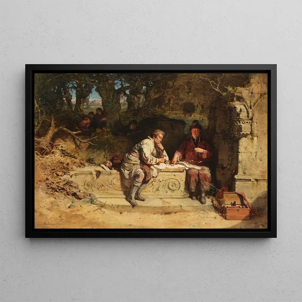 Les Tricheurs : una scena di inganno e tensione In "Les Tricheurs", John Ritchie ci immerge in un'atmosfera intrigante, dove la luce gioca un ruolo essenziale per accentuare le emozioni dei personaggi. La composizione dinamica mette in evidenza un gruppo di giocatori, i cui volti tradiscono tensione e avidità. I colori caldi, dominati da tonalità terrose, creano un contrasto marcato con le ombre, rafforzando l'idea di duplicità. La tecnica di Ritchie, che mescola realismo e un tocco di drammatizzazione, invita lo spettatore a interrogarsi sulle intenzioni dei personaggi, offrendo al contempo un'immersione in un momento di vita coinvolgente. John Ritchie : un maestro del genere narrativo John Ritchie, artista del XVIII secolo, è riconosciuto per le sue scene di genere che catturano la vita quotidiana con una profondità psicologica. Influenzato dai maestri olandesi, si inscrive in una tradizione artistica che valorizza il realismo e l'osservazione minuziosa dei comportamenti umani. La sua capacità di raccontare storie attraverso le sue opere lo ha reso una figura importante della sua epoca. Sebbene meno conosciuto di alcuni dei suoi contemporanei, Ritchie ha saputo lasciare il segno con composizioni che interrogano le relazioni umane e le motivazioni nascoste. Un acquisto decorativo con molteplici vantaggi La riproduzione di "Les Tricheurs" è un pezzo decorativo ideale per arricchire il vostro interno, che sia in un salotto, in un ufficio o in una camera da letto. La qualità di stampa garantisce una fedeltà notevole ai dettagli dell'opera originale, permettendo di percepire tutta l'intensità della scena. Integrando questa tela nella vostra decorazione, portate un tocco di eleganza e mistero, stimolando conversazioni sull'arte e sulla vita umana. Questa tela, per il suo fascino estetico, saprà conquistare gli appassionati d'arte come i neofiti, rendendola una scelta saggia per qualsiasi collezione.