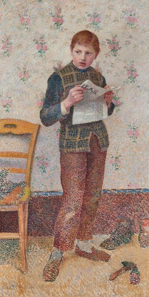 In "Il calzolai", Henri Delavalle dipinge un attimo fugace della vita quotidiana, in cui un giovane calzolaio si dedica a lucidare le scarpe con una concentrazione palpabile. La composizione dinamica, in cui il movimento è catturato con finezza, evoca l'energia delle strade animate. I colori caldi, mescolando tonalità terrose e bagliori di luce, creano un'atmosfera vivace e autentica. La tecnica di Delavalle, combinando realismo e sensibilità, permette di percepire l'importanza di questo lavoro umile ma essenziale, rivelando la bellezza dei gesti semplici nella vita urbana.