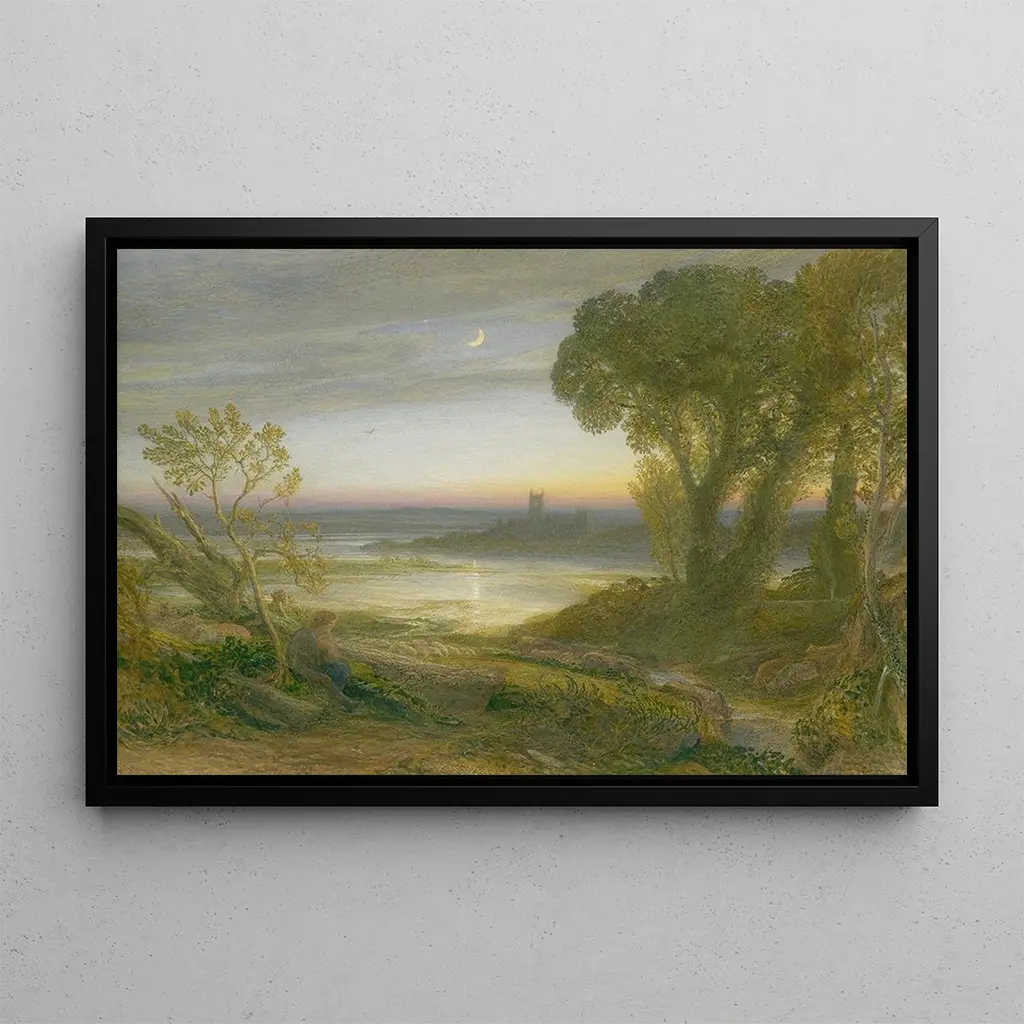 La riproduzione di Le Couvre-feu ci trasporta in una scena notturna intrisa di mistero e serenità. Le tonalità scure, accentuate da tocchi di luce, creano un'atmosfera quasi onirica. Samuel Palmer, maestro del paesaggio romantico, utilizza la tecnica dell'acquarello per catturare la magia delle ore crepuscolari. Le silhouette degli alberi e degli edifici si delineano con delicatezza, mentre la luce della luna sembra danzare sulla tela. Quest'opera invita alla contemplazione, offrendo un momento di pausa nel tumulto della vita quotidiana. Samuel Palmer: un pioniere del romanticismo inglese Samuel Palmer, attivo nel XIX secolo, è riconosciuto come uno dei pionieri del romanticismo inglese. Influenzato dalla natura e dai paesaggi bucolici, ha saputo sviluppare uno stile unico, mescolando realismo e idealizzazione. Le sue opere, spesso ispirate dalle passeggiate nella campagna inglese, riflettono una ricerca spirituale e una connessione profonda con la natura. Le Couvre-feu è emblematico di questa ricerca, illustrando la bellezza dei paesaggi notturni mentre evoca temi di tranquillità e contemplazione. Palmer ha lasciato un'impronta indelebile sull'arte britannica, ispirando molti artisti dopo di lui. Una acquisizione decorativa con molteplici vantaggi Scegliere la riproduzione di Le Couvre-feu significa optare per un'opera che saprà abbellire il vostro interno. Che la si appenda in un soggiorno, in uno studio o in una camera da letto, questa stampa d'arte porta un'atmosfera rilassante e poetica. La qualità della riproduzione garantisce fedeltà ai dettagli e ai colori, permettendo di godere appieno della visione artistica di Palmer. L'attrattiva estetica di questa tela la rende una scelta ideale per chi desidera arricchire la propria decorazione con un tocco di romanticismo e serenità. Integrando quest'opera nel vostro spazio, create un ambiente ispirante e accogliente.