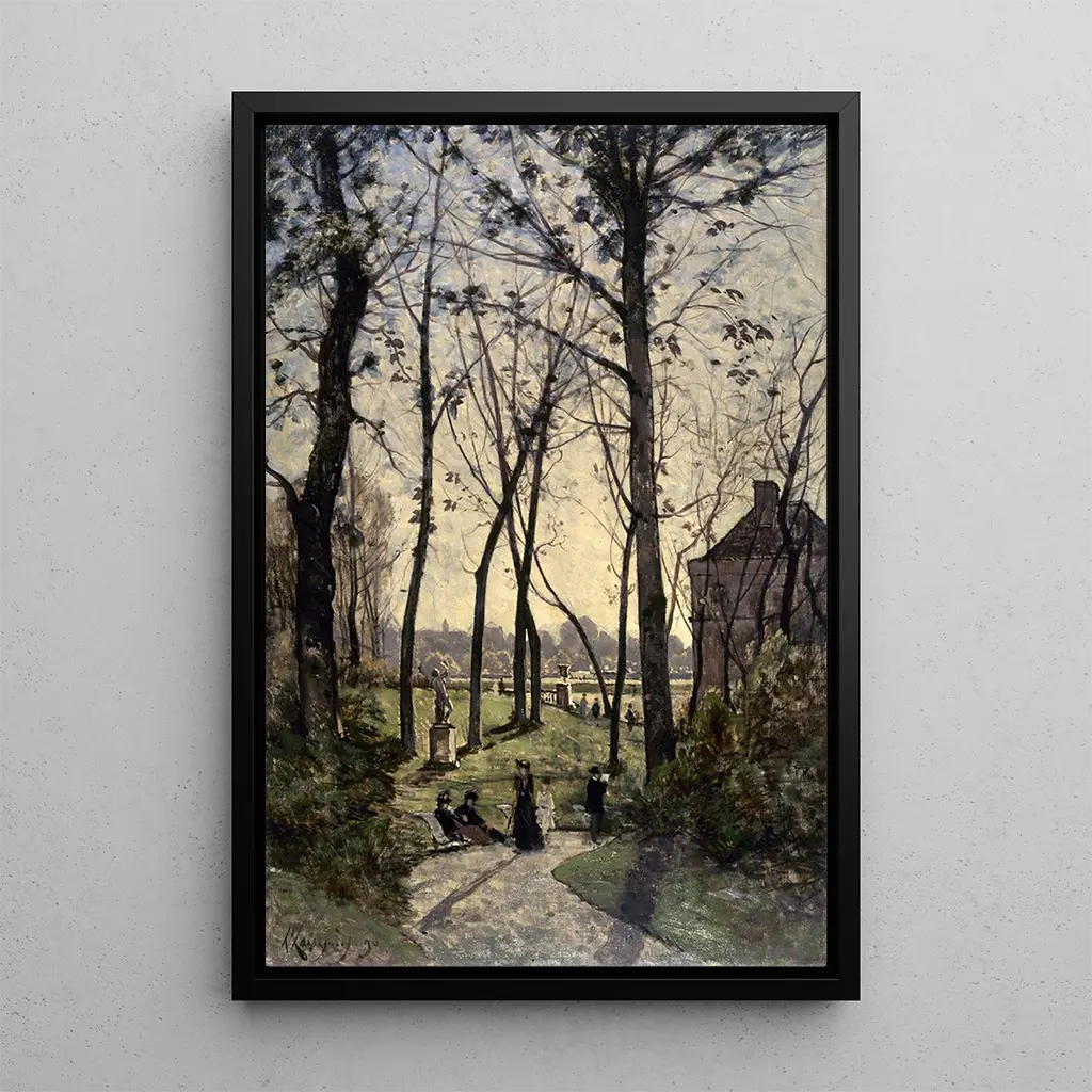 Henri-Joseph Harpignies, pittore paesaggista del XIX secolo, ha saputo catturare la bellezza dei paesaggi francesi, in particolare quelli della regione parigina. Il suo stile, influenzato dall'impressionismo, si caratterizza per un uso sottile della luce e dei colori. Harpignies è stato un fervente difensore della natura, e le sue opere testimoniano di un'epoca in cui l'arte si rivolgeva alla rappresentazione delle scene della vita quotidiana. Dipingendo luoghi emblematici come il Jardin du Luxembourg, ha contribuito a immortalare la bellezza di Parigi, ispirando anche molti artisti della sua generazione.