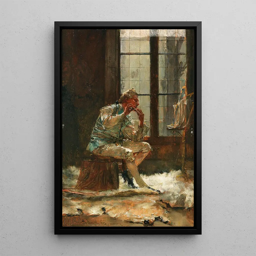 Le giocatore di flauto: una melodia visiva affascinante In questa opera coinvolgente, "Il giocatore di flauto", Gotthardt Kuehl ci immerge in un universo intriso di malinconia e serenità. La composizione mette in evidenza un giovane musicista, il volto concentrato, mentre le note sembrano uscire dal suo strumento, creando un'atmosfera quasi magica. I colori caldi e terrosi, mescolati a tocchi di luce dorata, evocano una dolce luce serale, avvolgendo la scena con un'aura nostalgica. La tecnica di Kuehl, che unisce realismo e impressionismo, dà vita a ogni dettaglio, dalle pieghe dell'abbigliamento alle espressioni delicate del volto, invitando lo spettatore a una contemplazione silenziosa. Gotthardt Kuehl: un maestro del realismo all’alba del XX secolo Nato nel 1850, Gotthardt Kuehl è un pittore tedesco riconosciuto per la sua capacità di catturare momenti della vita quotidiana con una sensibilità unica. Influenzato dal movimento realista e dai grandi maestri della pittura, ha saputo sviluppare uno stile che unisce precisione ed emozione. Attivo principalmente alla fine del XIX secolo e all’inizio del XX secolo, Kuehl ha spesso esplorato temi legati alla natura umana e alle tradizioni popolari. La sua opera, sebbene meno conosciuta di quella di alcuni contemporanei, ha lasciato un’impronta duratura nel mondo dell’arte, testimoniando un’epoca in cui l’introspezione e la bellezza dei gesti semplici erano celebrate. Una riproduzione decorativa con molteplici virtù La riproduzione di "Il giocatore di flauto" è un pezzo decorativo che saprà arricchire qualsiasi spazio, che si tratti di un soggiorno accogliente, di un ufficio ispirante o di una camera rilassante. La qualità di stampa fedele permette di percepire tutta la profondità dei colori e dei dettagli dell’opera originale, aggiungendo un tocco di eleganza al vostro interno. Questo quadro, con il suo indiscusso fascino estetico, invita alla rêverie e alla contemplazione, facendo di ogni sguardo un momento di pausa e riflessione. Regalate questa tela per trasformare il vostro spazio in un luogo di bellezza e armonia.