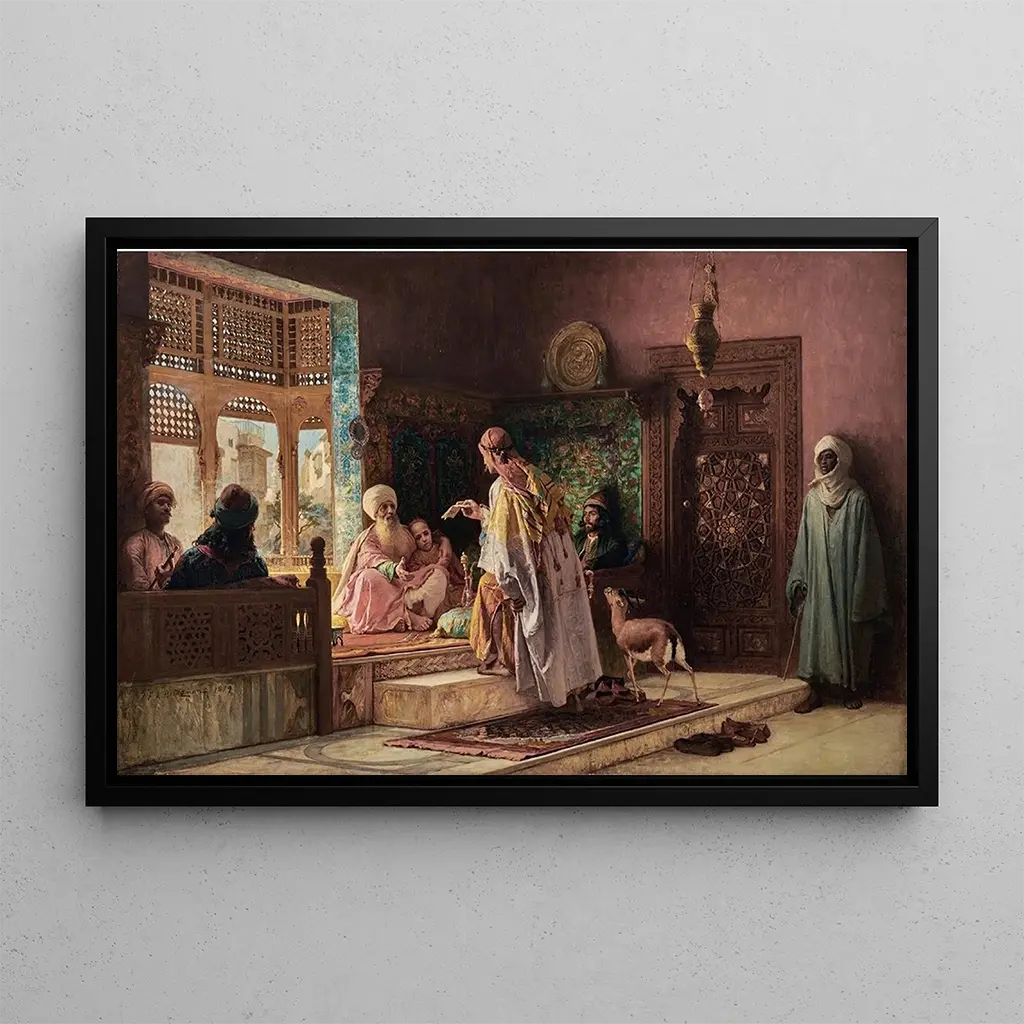 Frederick Arthur Bridgman, attivo alla fine del XIX secolo, è riconosciuto per le sue opere ispirate dai suoi viaggi in Oriente. Influenzato dai movimenti del realismo e del romanticismo, ha saputo catturare l'essenza delle culture che ha incontrato. Le sue stampe d'arte, spesso intrise di luce e calore, testimoniano la sua ammirazione per la bellezza dei paesaggi e dei personaggi esotici. Bridgman è riuscito a imporsi nel mondo dell'arte grazie al suo stile unico, che mescola una tecnica raffinata a una sensibilità profonda. "Le Messager" si inserisce perfettamente in questa linea, illustrando il suo talento nel rappresentare scene piene di senso ed emozione.