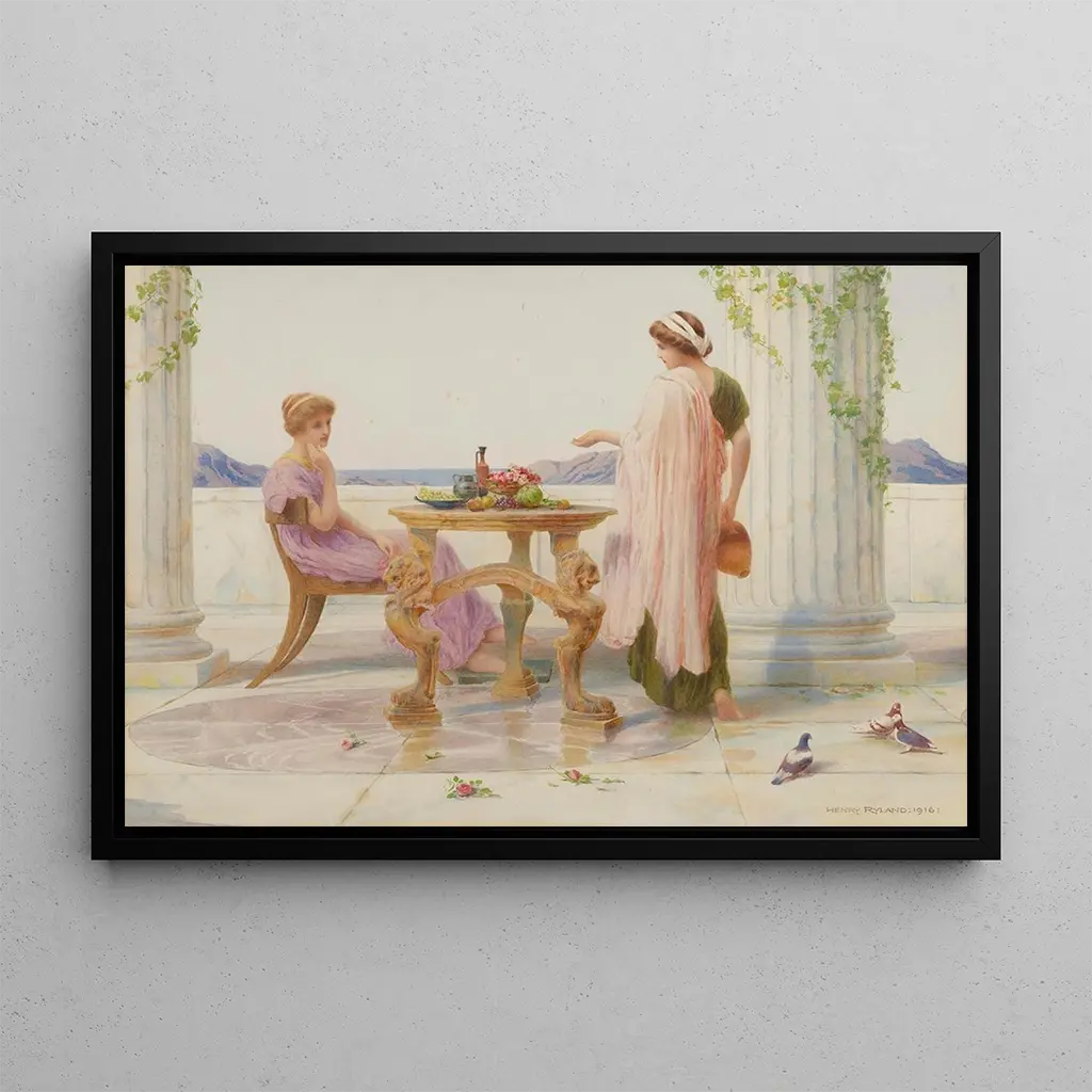 La riproduzione d'arte "Il pranzo all'aperto": una scena di convivialità e gioia di vivere La stampa d'arte "Il pranzo all'aperto" di Henry Ryland evoca un'atmosfera di festa e convivialità. I personaggi, riuniti intorno a un tavolo imbandito con delicati piatti, sembrano condividere un momento di felicità semplice. I colori vivaci e luminosi, che vanno dal verde brillante degli alberi alle tonalità calde dei vestiti, creano un'atmosfera gioiosa e accogliente. La tecnica di Ryland, che combina abilmente il realismo con un tocco impressionista, dà vita a questa scena di plein air, dove la luce naturale svolge un ruolo fondamentale. Ogni dettaglio, dalle espressioni dei commensali ai riflessi nei bicchieri, contribuisce all'autenticità di questo momento catturato. Henry Ryland: un maestro del genere vittoriano Henry Ryland, attivo alla fine del XIX secolo, è un artista britannico noto per le sue scene di vita quotidiana e i suoi ritratti. Influenzato dal movimento prerafaellita, si inserisce in un periodo in cui l'arte vittoriana cerca di catturare la bellezza della natura e le emozioni umane. Ryland ha saputo unire tradizione e innovazione, integrando elementi di pittura impressionista pur rimanendo fedele a composizioni classiche. La sua opera, sebbene meno conosciuta di quella dei suoi contemporanei, rappresenta un prezioso patrimonio dell'arte vittoriana, celebrando la vita e la convivialità attraverso scene vibranti e piene di vita. Una riproduzione decorativa con molteplici vantaggi La riproduzione del quadro "Il pranzo all'aperto" costituisce una scelta decorativa ideale per diversi spazi abitativi. Che si tratti di un soggiorno, di un ufficio o di una camera da letto, questa stampa d'arte porta un tocco di calore e convivialità. La qualità di stampa garantisce fedeltà ai colori e ai dettagli dell'opera originale, permettendo di godere appieno dell'atmosfera gioiosa che essa trasmette. Integrando questa riproduzione nella vostra decorazione, invitate non solo un'opera d'arte nel vostro interno, ma anche un momento di condivisione e felicità, arricchendo così il vostro spazio abitativo.