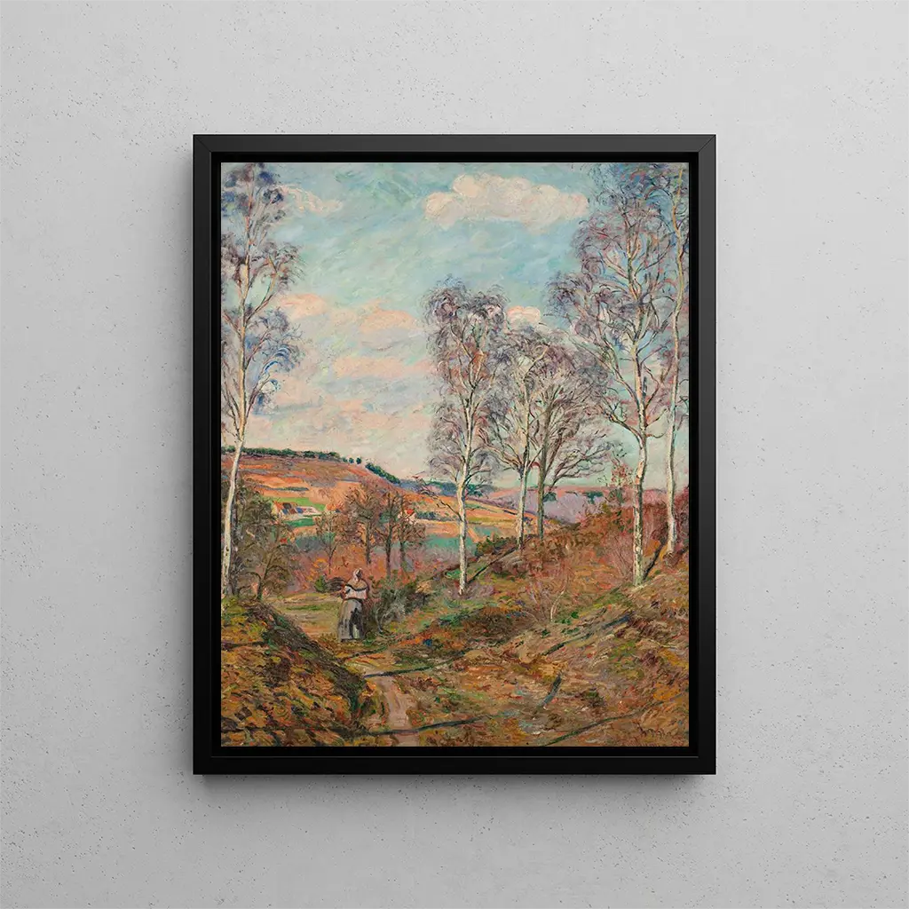 Reproduction Le chemin vers la vallée - Armand Guillaumin – Introduzione affascinante Nel vasto panorama dell'impressionismo, "Le chemin vers la vallée" di Armand Guillaumin si distingue per la sua luminosità e atmosfera intrisa di serenità. Quest'opera, che evoca una passeggiata nella natura, invita lo spettatore a immergersi in un paesaggio dove il cielo e la terra si incontrano in un'armonia di colori. Guillaumin, spesso meno conosciuto rispetto ai suoi contemporanei, riesce a catturare l'essenza stessa della luce, trasformando ogni colpo di pennello in un'ode alla bellezza del mondo naturale. La stampa d'arte di questa opera permette di riscoprire la magia di questo momento sospeso, dove il tempo sembra dilatarsi tra le sfumature. Stile e unicità dell’opera Lo stile di Guillaumin si caratterizza per un uso audace dei colori e una tecnica di pennellata che dà vita ai suoi paesaggi. In "Le chemin vers la vallée", l'artista gioca con i contrasti tra i verdi vivaci degli alberi e i cieli di un blu profondo, creando un'atmosfera vibrante e dinamica. Le pennellate, leggere ed energiche, sembrano danzare sulla tela, evocando il movimento della brezza tra le foglie. Quest'opera si distingue per il suo approccio quasi tattile alla natura, dove ogni elemento è reso con tale precisione che si può quasi sentire la freschezza dell'aria. La composizione, inoltre, guida lo sguardo dello spettatore lungo un percorso tortuoso, invitando a un'esplorazione visiva che richiama una passeggiata contemplativa. L’artista e la sua influenza Armand Guillaumin, nato nel 1841, è un artista il cui percorso è intimamente legato all'evoluzione dell'impressionismo. Sebbene non abbia beneficiato della stessa notorietà di figure come Monet o Renoir, il suo lavoro è stato una fonte di ispirazione per molti artisti. Guillaumin ha saputo sviluppare uno stile proprio, mescolando sensibilità alla luce e amore per i paesaggi rurali. La sua partecipazione alle esposizioni impressioniste e le amicizie con altri grandi maestri del suo tempo testimoniano il suo ruolo in questo movimento artistico. Riscoprendo "Le chemin vers la vallée", si comprende meglio come Guillaumin abbia contribuito a modellare