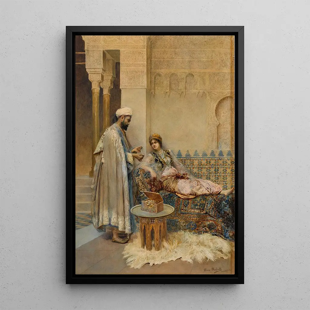 "Le Cadeau" di Maria Martinetti evoca una scena intima e toccante, dove lo scambio di un dono diventa un simbolo di affetto. I colori delicati e i tratti sottili dei personaggi creano un'atmosfera romantica e calorosa. Martinetti eccelle nella rappresentazione delle emozioni, e questa opera non fa eccezione. Gli sguardi scambiati e i gesti delicati testimoniano un momento prezioso, catturando l'essenza stessa dell'amore e della generosità. La stampa d'arte di questa tela invita alla riflessione sui legami umani e sulla bellezza dei gesti semplici.