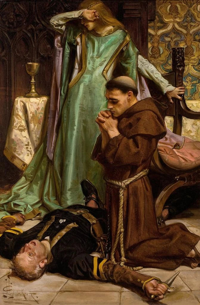 In "Il salvataggio di Gismonda", Joseph Christian Leyendecker cattura un momento intenso in cui l'eroismo e la passione si incontrano. La composizione dinamica, con personaggi in movimento, evoca una tensione palpabile. I colori vivaci, in particolare i rossi e i blu, rafforzano l'emozione della scena, mentre la tecnica dell'olio su tela permette dettagli raffinati e una profondità visiva. L'atmosfera è allo stesso tempo drammatica e romantica, immergendo lo spettatore in un racconto coinvolgente che trascende il semplice quadro.