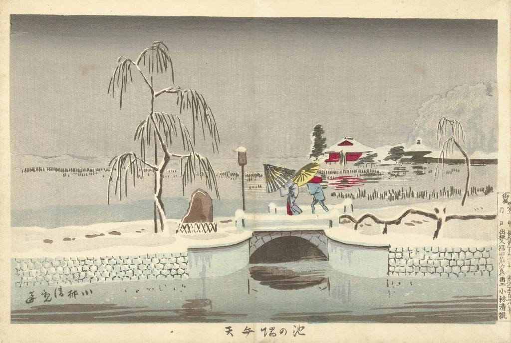 Kobayashi Kiyochika, attivo alla fine del XIX secolo, è un artista di rilievo del movimento ukiyo-e, che ha saputo unire tradizione e modernità. Influenzato dalle tecniche occidentali, ha reinventato l'arte della stampa d'arte su legno, creando opere che riflettono la transizione del Giappone verso la modernità. Il suo stile si caratterizza per composizioni dinamiche e colori vivaci, testimonianza dell'importanza della natura nella cultura giapponese. Kiyochika ha anche svolto un ruolo chiave nella rappresentazione di paesaggi urbani e scene della vita quotidiana, rendendolo una figura imprescindibile nella storia dell'arte giapponese.