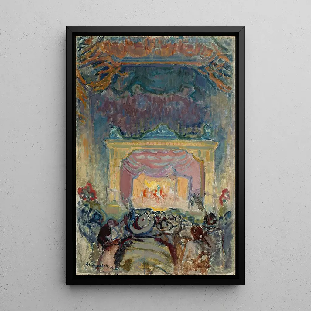 Dans cette œuvre vibrante, Magnus Enckell capture l'effervescence du Théâtre de Variétés à Paris, un lieu emblématique de la culture française. Les couleurs éclatantes et les formes dynamiques évoquent une atmosphère de joie et de divertissement. Les personnages, habillés de costumes flamboyants, semblent danser sous les lumières scintillantes, créant une scène vivante et immersive. La technique de l'artiste, mêlant impressionnisme et touches de modernisme, donne à cette toile une profondeur émotionnelle qui transporte le spectateur dans l'univers fascinant du théâtre parisien.