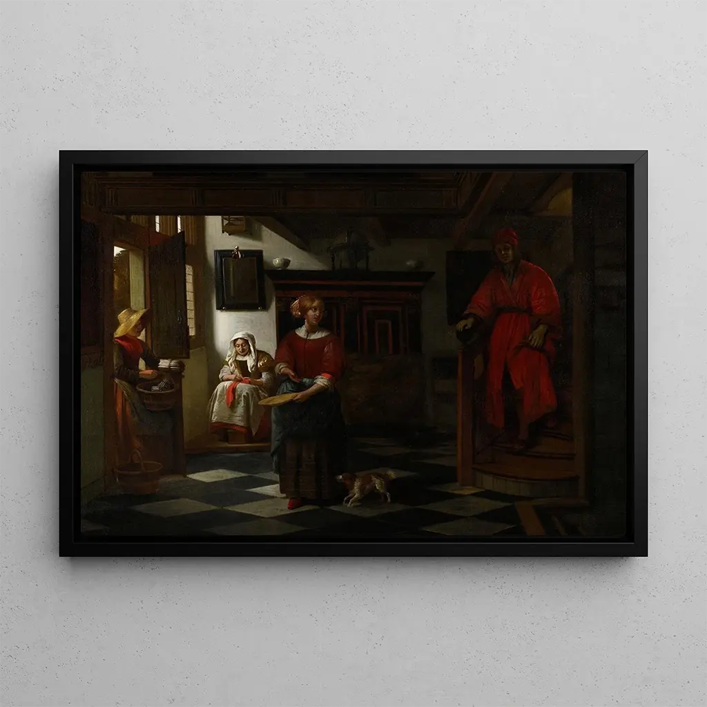Il venditore di asparagi: una scena di vita quotidiana vibrante In quest'opera, Pieter de Hooch ci immerge in una scena di mercato animata, dove un venditore di asparagi attira l'attenzione dei passanti. I colori caldi e terrosi, associati a una luce soffusa, creano un'atmosfera accogliente e familiare. La composizione, accuratamente studiata, mette in evidenza i dettagli delle verdure fresche, integrando personaggi che animano il quadro. Ogni elemento sembra raccontare una storia, invitando lo spettatore a immaginarsi nel cuore di questa interazione sociale, dove natura e umanità si incontrano. Pieter de Hooch: un maestro del genere olandese Pieter de Hooch, attivo nel XVII secolo, è riconosciuto per le sue scene di vita quotidiana, spesso intrise di una tranquillità e intimità notevoli. Influenzato da contemporanei come Vermeer, Hooch si distingue per la sua capacità di giocare con la luce e lo spazio. Le sue opere, spesso incentrate su interni e interazioni umane, testimoniano di un'epoca in cui il realismo e la rappresentazione della vita domestica occupavano un ruolo preponderante nell'arte olandese. Hooch è stato in grado di catturare l'essenza della vita borghese, rendendolo un artista imprescindibile del suo tempo. Un acquisto decorativo con molteplici vantaggi La riproduzione del quadro Il venditore di asparagi è una scelta ideale per arricchire la vostra decorazione d'interni. Che si tratti di un soggiorno, di un ufficio o di una camera da letto, questa tela aggiunge un tocco di calore e convivialità. La qualità di stampa garantisce fedeltà ai colori e ai dettagli dell'opera originale, permettendo di apprezzarne l'attrattiva estetica quotidianamente. Integrando questa riproduzione nel vostro spazio, non solo portate l'arte nella vostra vita, ma anche una parte della storia e della cultura olandese.
