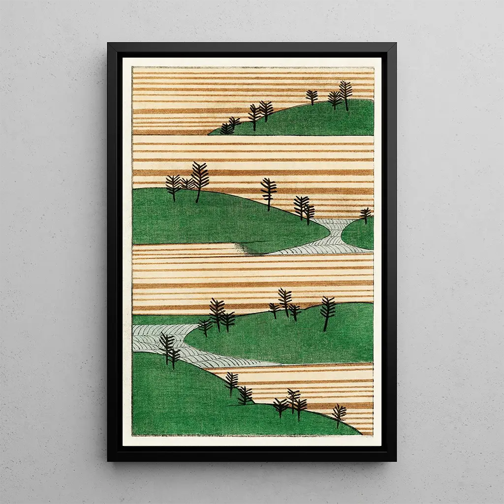 Illustrazione di paesaggio: un'ode alla natura serena L'illustrazione di paesaggio di Watanabe Seitei evoca un'armonia perfetta tra l'uomo e la natura. I colori delicati, che vanno dai verdi rilassanti ai blu profondi, creano un'atmosfera di tranquillità. La tecnica della stampa d'arte su carta, tipica dell'ukiyo-e, permette di catturare la luce e le ombre con una finezza notevole. Ogni dettaglio, dagli alberi maestosi ai fiumi sinuosi, invita lo spettatore a una contemplazione meditativa. Quest'opera, allo stesso tempo semplice e complessa, ci trasporta in un mondo in cui la bellezza naturale è celebrata con grazia. Watanabe Seitei: un maestro della stampa d'arte giapponese Watanabe Seitei è una figura emblematica dell'arte giapponese del XX secolo, conosciuto per la sua capacità di fondere tradizione e modernità. Influenzato dai grandi maestri dell'ukiyo-e, ha saputo reinventare questo stile integrando elementi contemporanei. La sua carriera, segnata da una ricerca costante della bellezza, si inserisce in un periodo in cui l'arte giapponese inizia a esportarsi e a influenzare l'Occidente. Seitei è stato anche un pioniere nell'uso del colore, portando una nuova dimensione alle sue opere. Il suo lascito perdura, ispirando numerosi artisti in tutto il mondo. Una riproduzione decorativa con molteplici vantaggi La riproduzione dell'illustrazione di paesaggio di Watanabe Seitei costituisce una scelta decorativa ideale per diversi spazi, che si tratti di un soggiorno, di un ufficio o di una camera da letto. La qualità di stampa garantisce una fedeltà ai dettagli originali, rendendo omaggio all'artista e aggiungendo un tocco di eleganza al vostro interno. L'attrattiva estetica di questa tela, con le sue sfumature delicate e la sua atmosfera rilassante, la rende un elemento centrale capace di catturare gli sguardi. Integrando quest'opera nella vostra decorazione, invitate la serenità e la bellezza della natura nella vostra quotidianità.