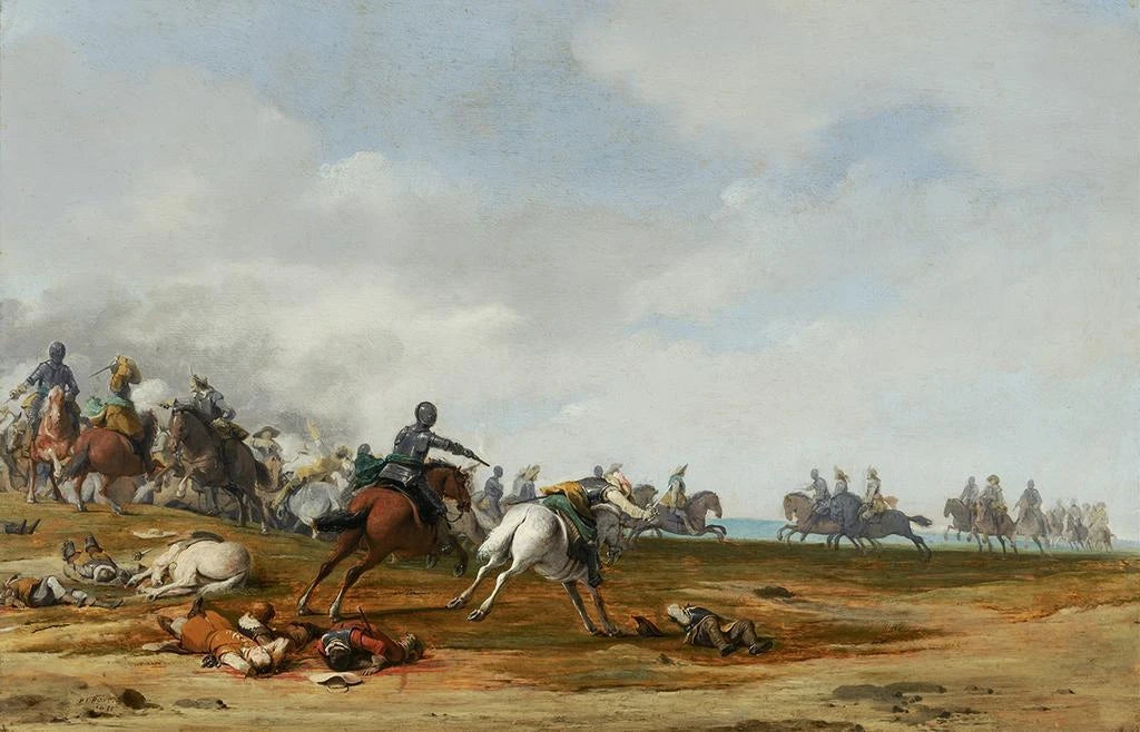 Engagement de cavalerie : una stampa d'arte epica di coraggio L'opera "Engagement de cavalerie" di Pieter Post rappresenta una scena di battaglia vibrante, dove la dinamica dei cavalli e dei cavalieri si intreccia in un movimento frenetico. I colori terrosi e le sfumature di blu creano un'atmosfera allo stesso tempo drammatica e realistica, mentre la tecnica di pittura ad olio permette di catturare i dettagli minuziosi degli armature e delle espressioni dei soldati. La luce svolge un ruolo essenziale, accentuando i contrasti e dando vita a questa rappresentazione eroica. Questa stampa d'arte invita lo spettatore a immergersi nell'intensità di un momento storico, dove il coraggio e il sacrificio si incontrano. Pieter Post : un maestro del paesaggio e della battaglia Pieter Post, attivo nel XVII secolo, è riconosciuto per le sue opere che mescolano paesaggi e scene di battaglia. Influenzato dai maestri fiamminghi, ha saputo sviluppare uno stile unico che combina precisione ed emozione. Le sue stampe d'arte, spesso commissionate da nobili, testimoniano l'importanza degli eventi militari della sua epoca. Post è riuscito a catturare lo spirito del suo tempo, in cui la guerra e la gloria dei cavalieri erano temi centrali. La sua eredità artistica perdura, e "Engagement de cavalerie" rimane un esempio emblematico del suo talento nel rappresentare il coraggio umano al centro della tempesta. Un acquisto decorativo con molteplici vantaggi La riproduzione della stampa d'arte "Engagement de cavalerie" costituisce una scelta decorativa ideale per un salotto o uno studio, portando un tocco di storia e grandezza nel vostro interno. La qualità della riproduzione garantisce fedeltà ai dettagli originali, permettendo di percepire l'energia della scena. Questa stampa d'arte, come tela, attira lo sguardo e suscita conversazioni, arricchendo allo stesso tempo l'atmosfera del vostro spazio. Che siate appassionati d'arte o appassionati di storia, questa opera è un'aggiunta preziosa che saprà valorizzare qualsiasi arredamento.