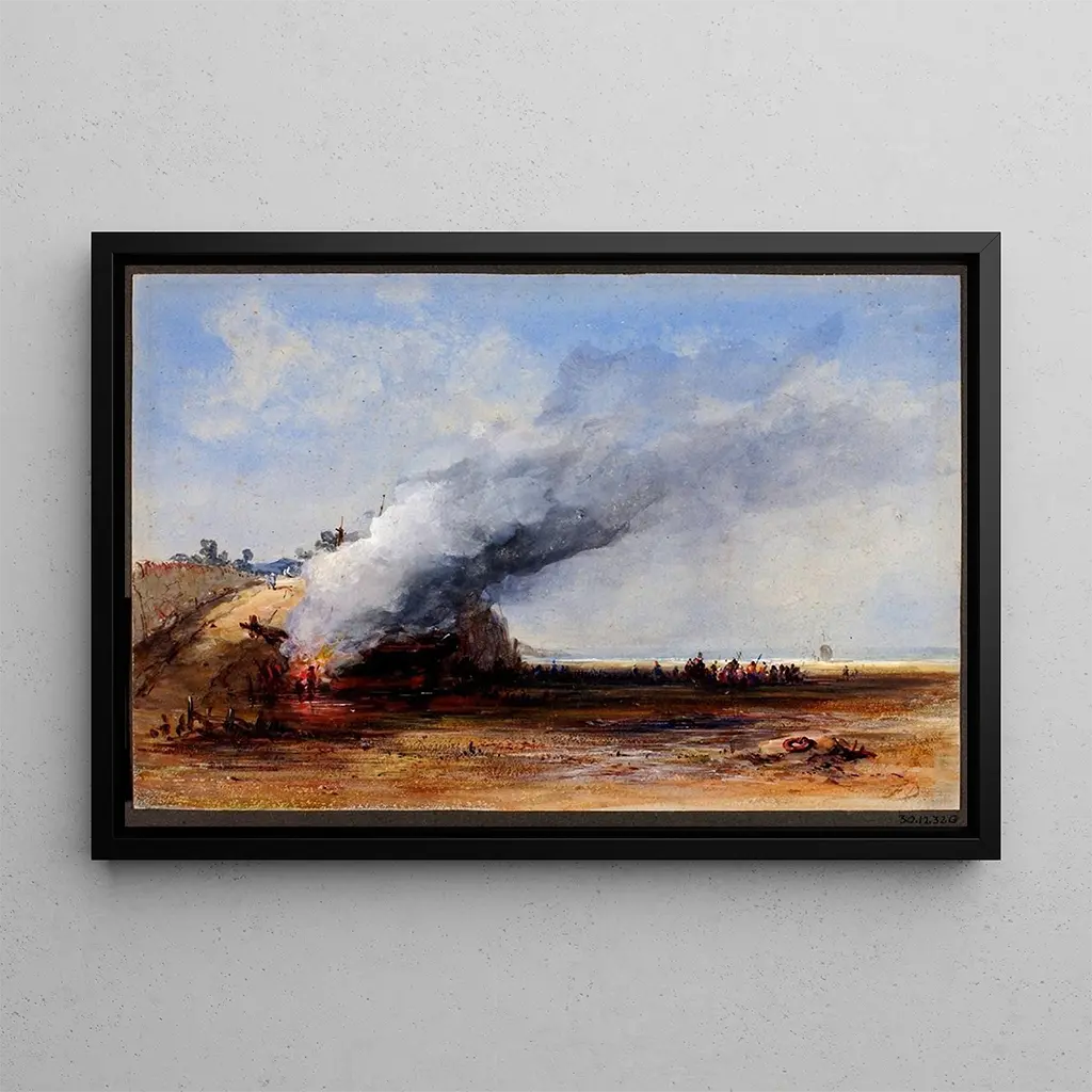 Incendio di una vecchia barca: una scena tragica e coinvolgente L'opera "Incendio di una vecchia barca" di Francis Danby rappresenta una scena drammatica in cui le fiamme danzano sulla chiglia di una nave in fiamme. La composizione è caratterizzata da colori vivaci e caldi, in particolare rossi e arancioni, che contrastano con le tonalità scure del mare. La tecnica di Danby, contraddistinta da un uso abile della luce e dell'ombra, crea un'atmosfera allo stesso tempo inquietante e affascinante. I dettagli minuziosi delle onde e dei riflessi aggiungono profondità a questa rappresentazione, invitando lo spettatore a percepire l'urgenza e la desolazione di questo momento. Francis Danby: un maestro del romanticismo britannico Francis Danby, attivo all'inizio del XIX secolo, è spesso associato al movimento romantico britannico. Influenzato da artisti come J.M.W. Turner, esplora i temi della natura e dell'emozione umana attraverso le sue opere. Danby è riuscito a catturare la bellezza sublime dei paesaggi, integrando elementi drammatici, come in "Incendio di una vecchia barca". La sua carriera è stata segnata da una ricerca di autenticità ed espressione personale, che gli ha permesso di distinguersi in un contesto artistico in piena evoluzione. Il suo lascito perdura, testimonianza dell'importanza della luce e del colore nell'arte romantica. Un acquisto decorativo con molteplici vantaggi La riproduzione di "Incendio di una vecchia barca" è un pezzo decorativo che saprà arricchire qualsiasi spazio, sia un soggiorno, uno studio o una camera da letto. La qualità di stampa e la fedeltà all'opera originale garantiscono un fascino estetico indiscutibile. Questo quadro cattura lo sguardo e stimola conversazioni, portando un tocco di dramma e passione alla vostra decorazione d'interni. Scegliendo questa tela, optate per un'opera che non solo abbellisce il vostro ambiente, ma racconta anche una storia coinvolgente ad ogni sguardo.