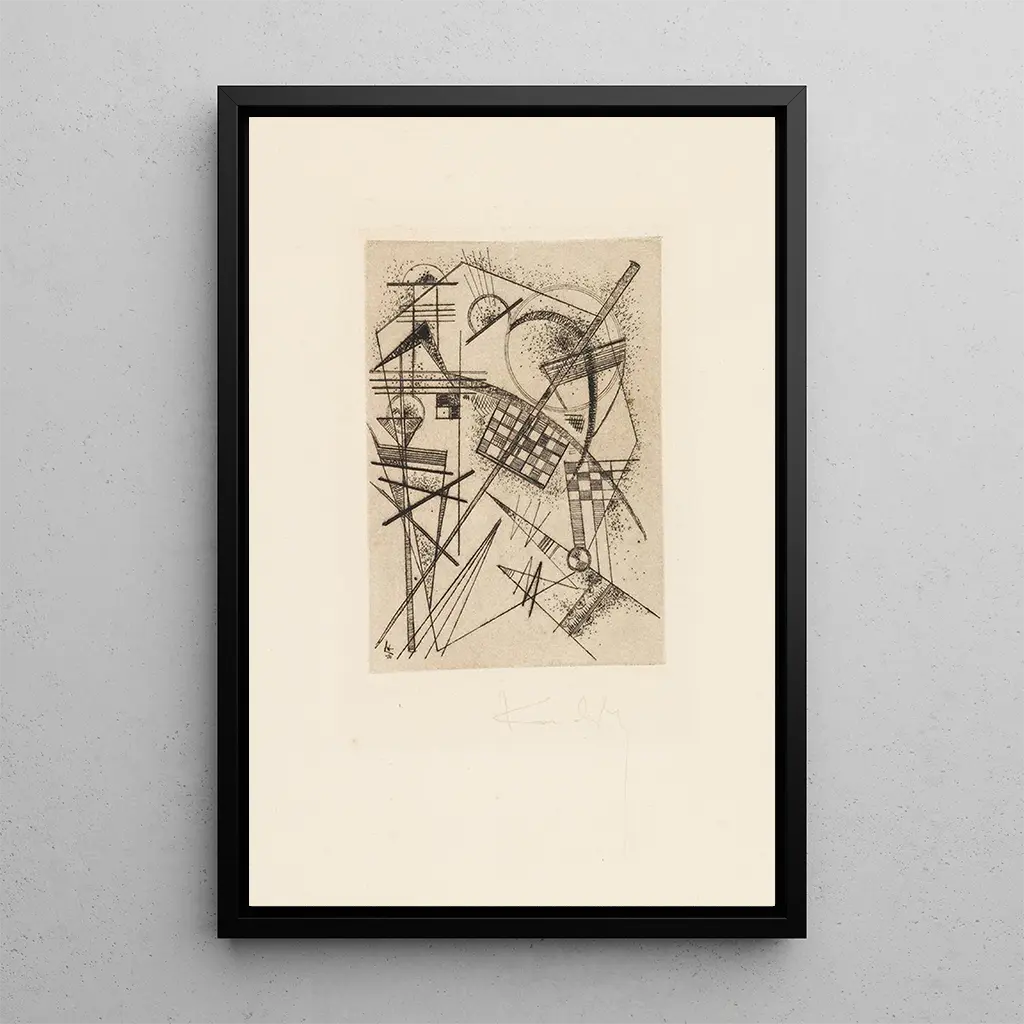"Gravure per la Comunità artistica tedesca" di Wassily Kandinsky è un'opera simbolo che celebra lo spirito di collaborazione e innovazione all'interno del movimento artistico della sua epoca. Questa stampa d'arte, ricca di dettagli e texture, illustra la passione di Kandinsky per l'esperimentazione grafica. Le linee dinamiche e le forme astratte si intrecciano, creando una composizione vivace che evoca una conversazione tra gli artisti. L'opera incarna l'idea che l'arte è un linguaggio universale, capace di superare le frontiere e unire gli spiriti creativi.