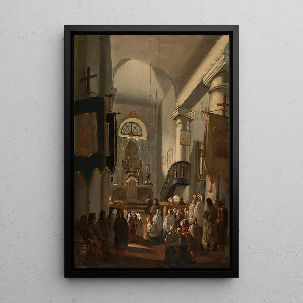 Quadro Interno di chiesa con personaggi - Ignacy Gierdziejewski | Stampa d'arte