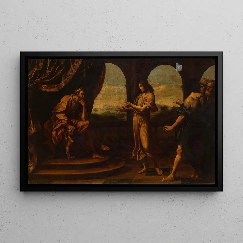 Joseph interpreta i sogni del Faraone: un racconto biblico a colori La stampa d'arte di Joseph interpreta i sogni del Faraone, opera anonima, immerge lo spettatore in un momento chiave della Bibbia. Questo dipinto vibrante illustra la scena in cui Joseph, incarcerato, viene chiamato a decifrare i sogni inquietanti del Faraone. I colori ricchi e i dettagli minuziosi di quest'opera evocano la grandezza dell'antico Egitto, trasmettendo al contempo un'atmosfera di mistero e rivelazione. Le espressioni dei personaggi, così come la composizione dinamica, catturano l'intensità di questo momento decisivo, in cui il destino di Joseph e quello del suo popolo si incrociano. Anonimo: un riflesso dell'arte religiosa medievale L'artista anonimo di quest'opera appartiene a una tradizione artistica che ha prosperato durante il Medioevo, dove l'arte religiosa era al centro della creazione. Questi artisti, spesso non riconosciuti, hanno svolto un ruolo essenziale nella trasmissione dei racconti biblici attraverso le loro opere. Joseph interpreta i sogni del Faraone è un esempio di quell'epoca, in cui i temi religiosi erano spesso rappresentati con grande devozione e un senso acuto del dramma. Questo dipinto testimonia l'importanza della narrazione visiva nell'arte medievale, permettendo ai fedeli di connettersi a storie sacre. Un'acquisizione decorativa con molteplici vantaggi La stampa d'arte di Joseph interpreta i sogni del Faraone è una scelta decorativa affascinante per qualsiasi ambiente della tua casa. Che sia in un soggiorno, in uno studio o in una camera da letto, questa tela porta un tocco di storia e spiritualità al tuo arredamento. La qualità di stampa garantisce fedeltà ai dettagli e ai colori dell'opera originale, creando così un punto focale intrigante nel tuo interno. Scegliendo quest'opera, arricchisci il tuo spazio di una dimensione narrativa ed estetica, celebrando allo stesso tempo l'eredità dell'arte religiosa medievale.