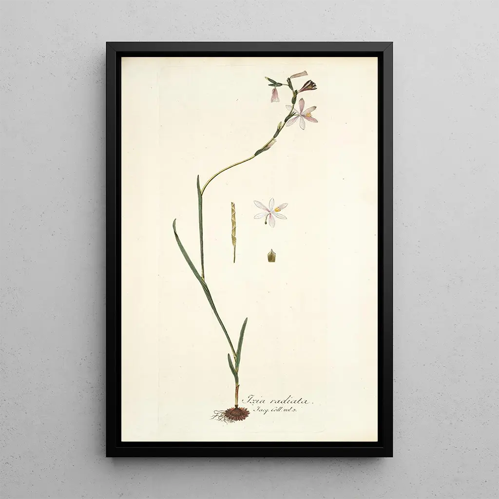 La stampa d'arte del quadro Ixia radiata è un pezzo decorativo che saprà abbellire qualsiasi interno. Che sia in un soggiorno, in uno studio o in una camera da letto, questa tela porta un tocco di freschezza e colore, creando un’atmosfera accogliente e vivace. La qualità di stampa garantisce una fedeltà notevole ai dettagli dell’opera originale, offrendo allo stesso tempo un’attrattiva estetica indiscutibile. Scegliendo questa stampa d'arte, opti per una decorazione che unisce eleganza e natura, arricchendo il tuo spazio di vita con un tocco artistico e raffinato.