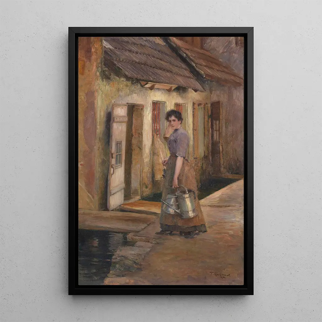 Franz Skarbina, nato nel 1849 a Berlino, è una figura emblematica del realismo tedesco. Influenzato dai grandi maestri della sua epoca, ha saputo sviluppare uno stile che unisce precisione e sensibilità. Le sue opere, spesso incentrate su temi della vita quotidiana, testimoniano una profonda comprensione dell'umanità. "Jeanette" è un esempio perfetto del suo talento, illustrando non solo la bellezza fisica, ma anche l'essenza stessa della femminilità. Attraverso i suoi ritratti, Skarbina è riuscito a immortalare momenti fugaci, rendendolo un artista imprescindibile del XIX secolo.